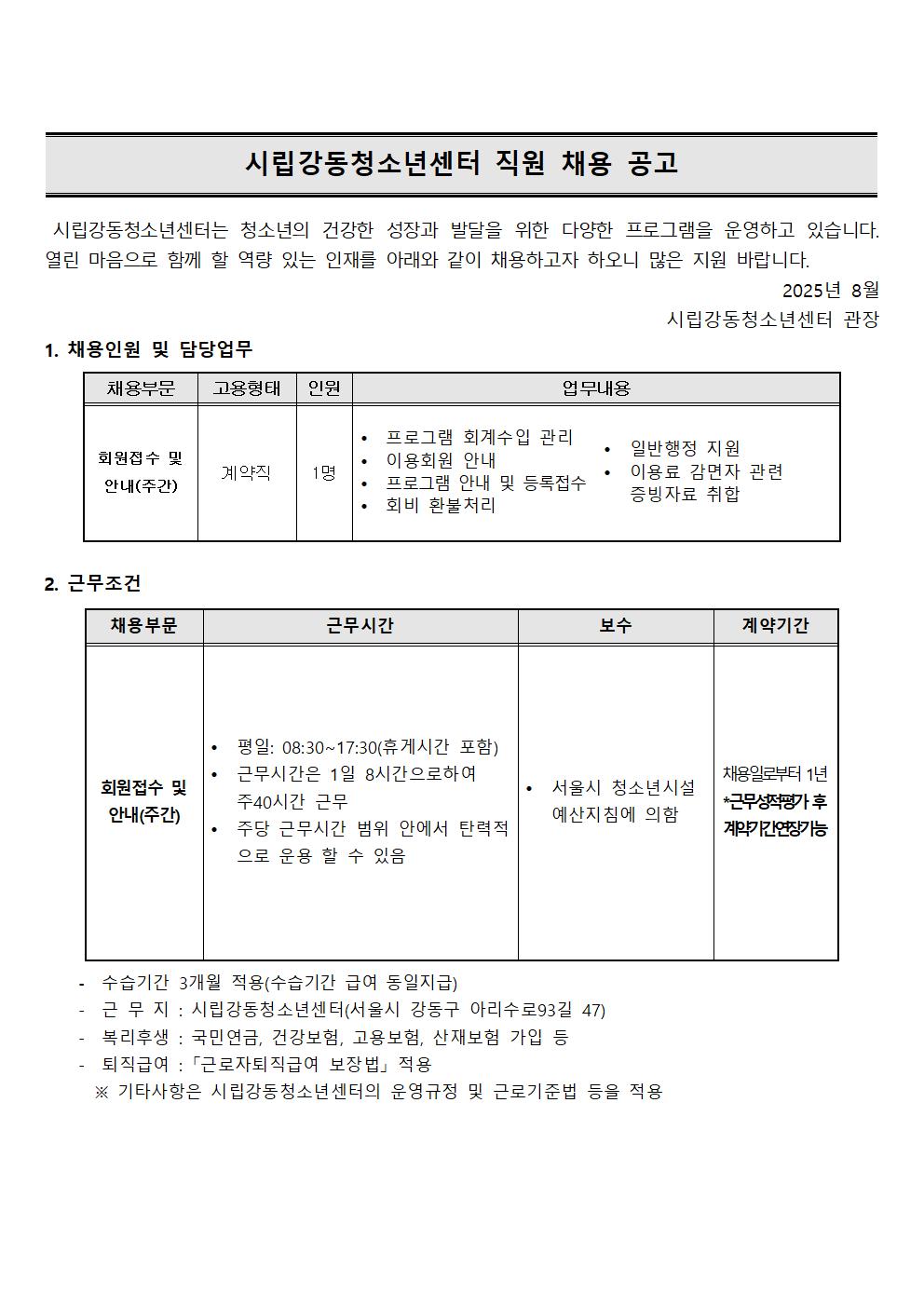 | (¼öÁ¤)½Ã¸³°µ¿Ã»¼Ò³â¼¾ÅÍ Á÷¿øÃ¤¿ë °ø°í | |||