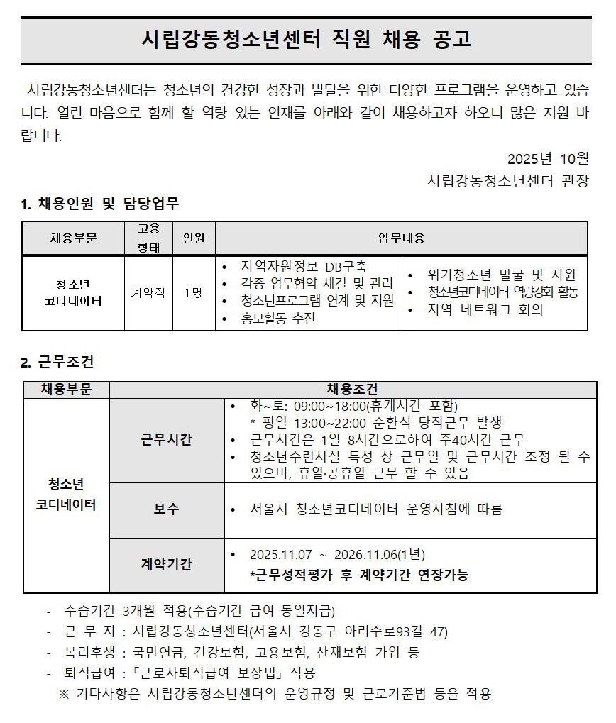 | ½Ã¸³°µ¿Ã»¼Ò³â¼¾ÅÍ Á÷¿ø(û¼Ò³âÄÚµð³×ÀÌÅÍ) ä¿ë °ø°í(Àç°ø°í) | |||
