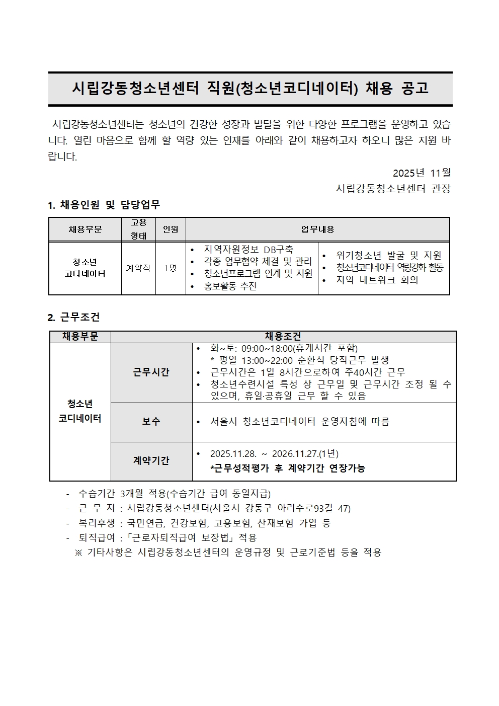 | ½Ã¸³°µ¿Ã»¼Ò³â¼¾ÅÍ Á÷¿ø(û¼Ò³âÄÚµð³×ÀÌÅÍ) ä¿ë °ø°í | |||