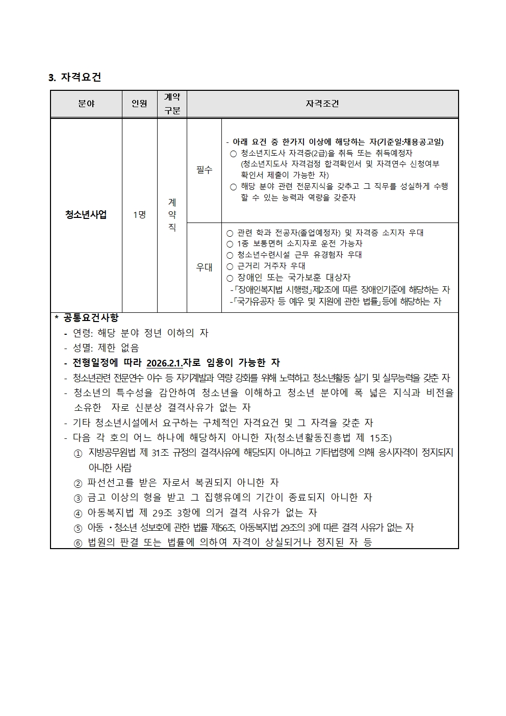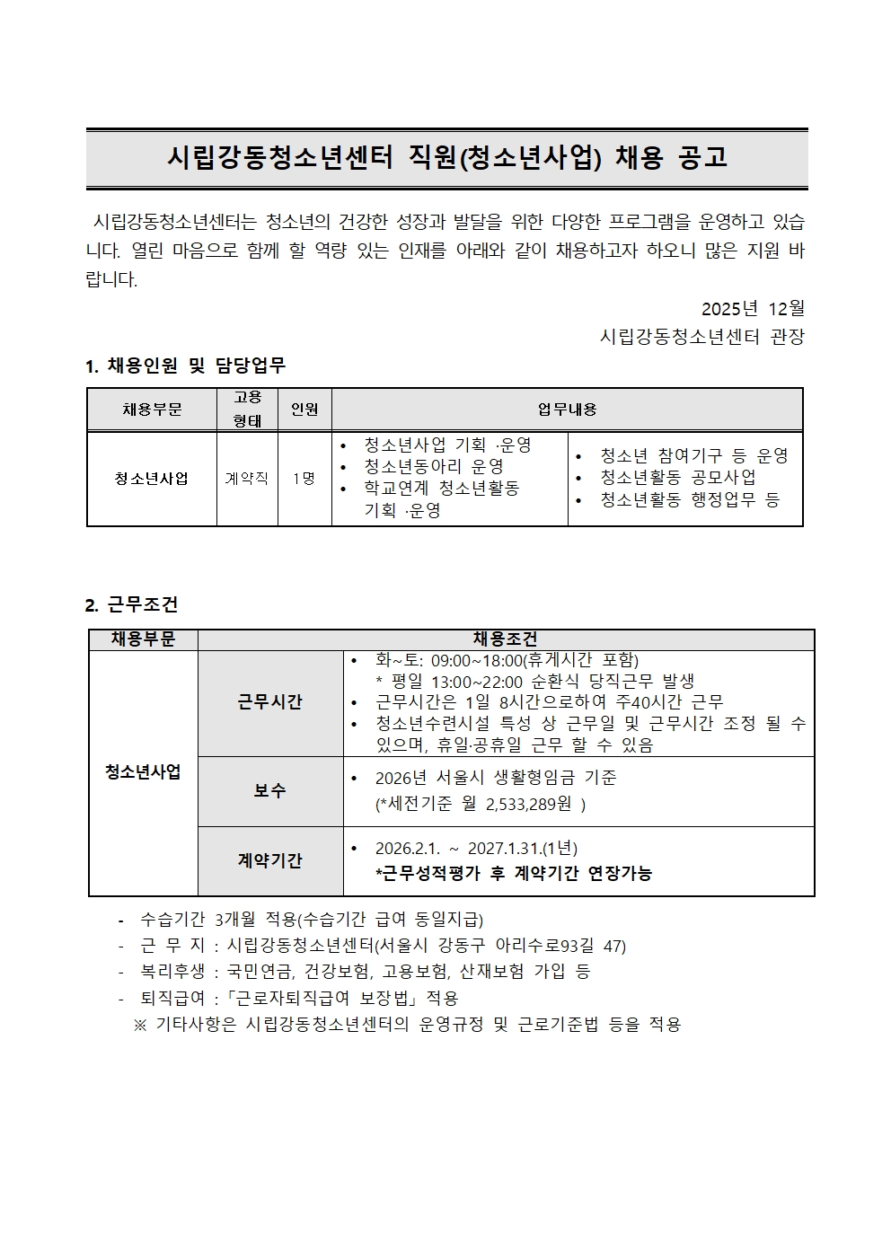 | ½Ã¸³°µ¿Ã»¼Ò³â¼¾ÅÍ Á÷¿ø(û¼Ò³â»ç¾÷) ä¿ë °ø°í | |||
