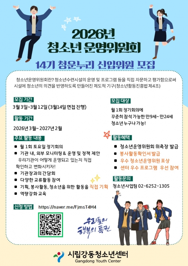 | ÀÛ¼ºÀÚ : ½Ã¸³°µ¿Ã»¼Ò³â¼¾ÅÍ(wagle1300@daum.net) ÀÛ¼ºÀÏ : 2026-03-10 Á¶È¸¼ö : 55 | |||