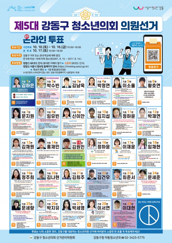 °µ¿±¸¸¦ ´ëÇ¥ÇÏ¿© °µ¿±¸¸¦ ¸¸µé¾î³ª°¥ ÁÖÀΰøµéÀ» ÇâÇØ, û¼Ò³â ¿©·¯ºÐµéÀÌ Á÷Á¢ÅõÇ¥!ÇÏ¿© ¼±ÃâÇØÁÖ¼¼¿ä. - »çÀüÅõÇ¥ : 2020.10.10.(Åä) ¿ÀÀü 10½Ã ~ 10.16.(±Ý) ¿ÀÈÄ6½Ã - º» Åõ Ç¥ : 2020.10.17.(Åä) ¿ÀÀü 10½Ã ~ ¿ÀÈÄ 6½Ã ¡Ú¿Â¶óÀÎÀüÀÚÅõÇ¥ ½Ç½Ã : QRÄÚµå ÀÎ½Ä ¶Ç´Â ¼¿ï½Ã ¿¥º¸ÆÃ ȨÆäÀÌÁö(https://mvoting.seoul.go.kr)