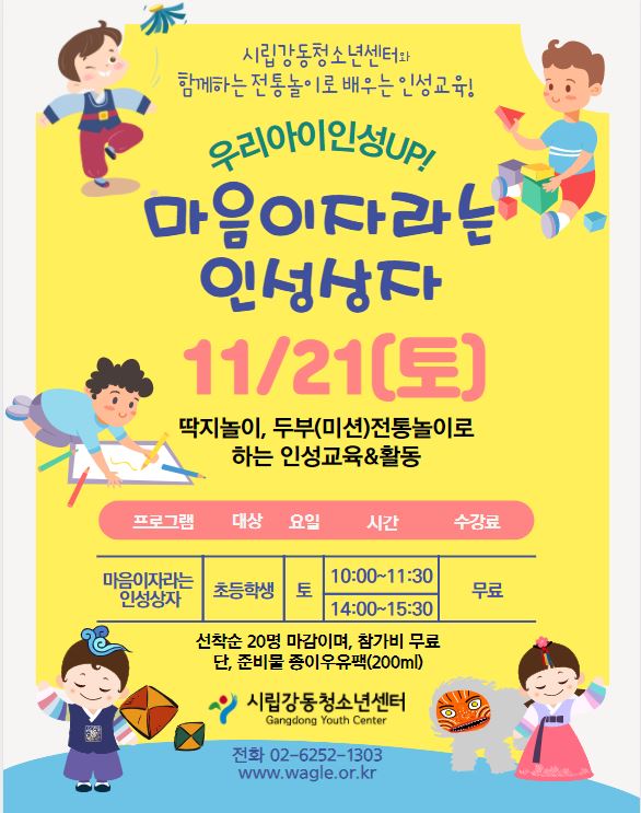 | ÀüÅë³îÀÌ·Î ÇÏ´Â Àμº±³À° "¸¶À½ÀÌ ÀÚ¶ó´Â Àμº»óÀÚ" Âü°¡ÀÚ ¸ðÁý(11/21) | |||