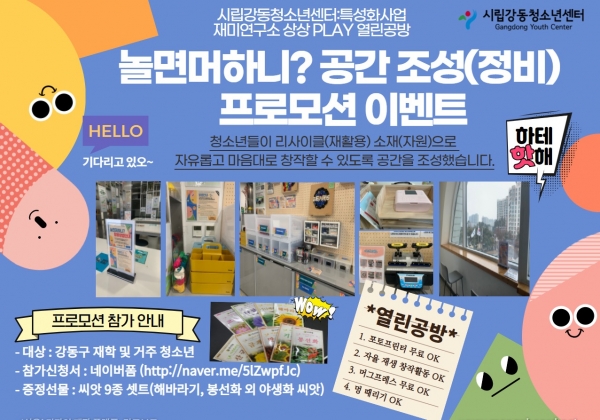 | ¼¾ÅÍ 3Ãþ "¿¸°°ø¹æ/³î¸é¸ÓÇÏ´Ï?" °ø°£ ÀçÁ¤ºñ Á¶¼º¿¡ µû¸¥ ÃàÇÏ À̺¥Æ® | |||