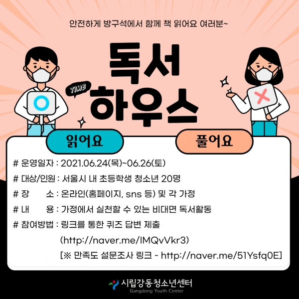| ÀÛ¼ºÀÚ : ½Ã¸³°µ¿Ã»¼Ò³â¼¾ÅÍ(wagle1300@daum.net) ÀÛ¼ºÀÏ : 2021-06-24 Á¶È¸¼ö : 3740 | |||