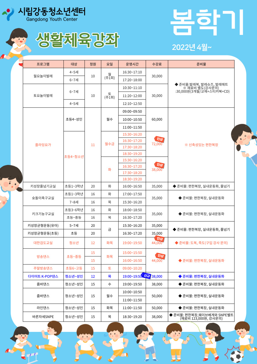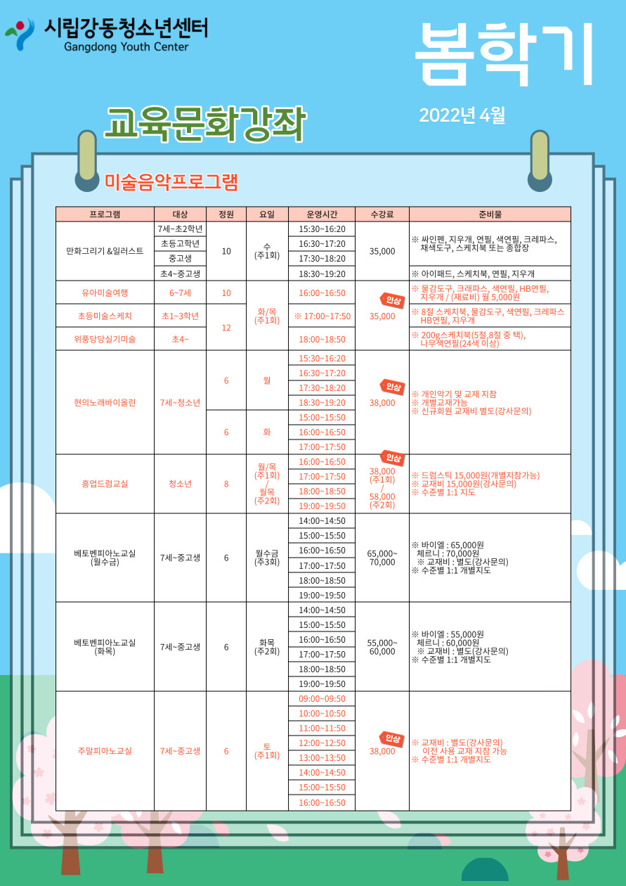 | 2022³â 4¿ù Æò»ý±³À°ÇÁ·Î±×·¥ ÇÁ·Î±×·¥ ¾È³»(±³À°¹®È»ç¾÷, »ýȰüÀ°»ç¾÷) - Âü°¡ºñ Àλó | |||