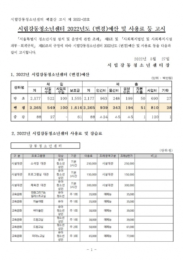 | [¿¹»ê°ø°í] 2022³â (º¯°æ)¿¹»ê ¹× »ç¿ë·á ½ÂÀÎ ³»¿ª °ø°í | |||