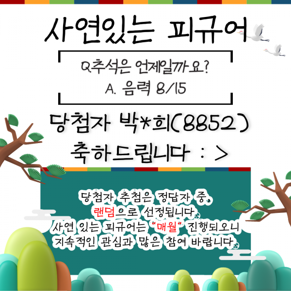 | »ç¿¬ ÀÖ´Â ÇDZԾî 2022³â 9¿ù ÄûÁî À̺¥Æ® ´ç÷ÀÚ ¹ßÇ¥ | ||||||