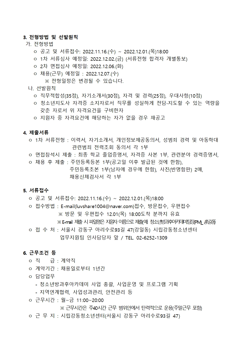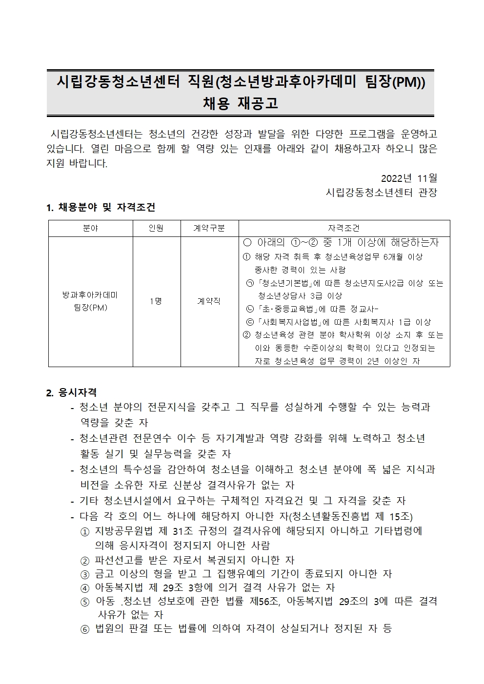 | ½Ã¸³°µ¿Ã»¼Ò³â¼¾ÅÍ Á÷¿ø(û¼Ò³â¹æ°úÈľÆÄ«µ¥¹Ì ÆÀÀå(PM)) ä¿ë Àç°ø°í(11.16) | |||