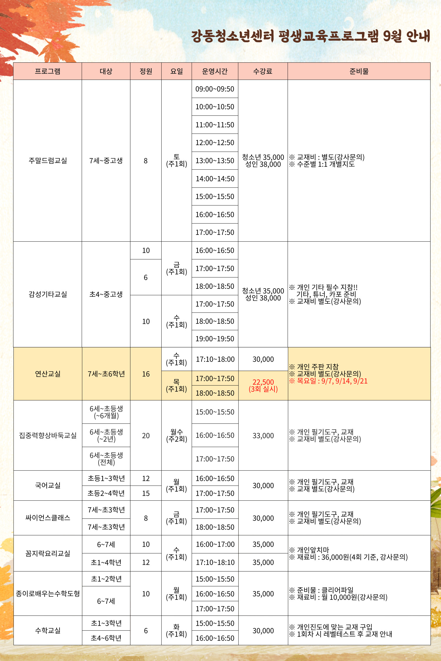 | 2023³â 9¿ù Æò»ý±³À°ÇÁ·Î±×·¥ ÇÁ·Î±×·¥ ¾È³»(±³À°¹®È»ç¾÷, »ýȰüÀ°»ç¾÷) | |||