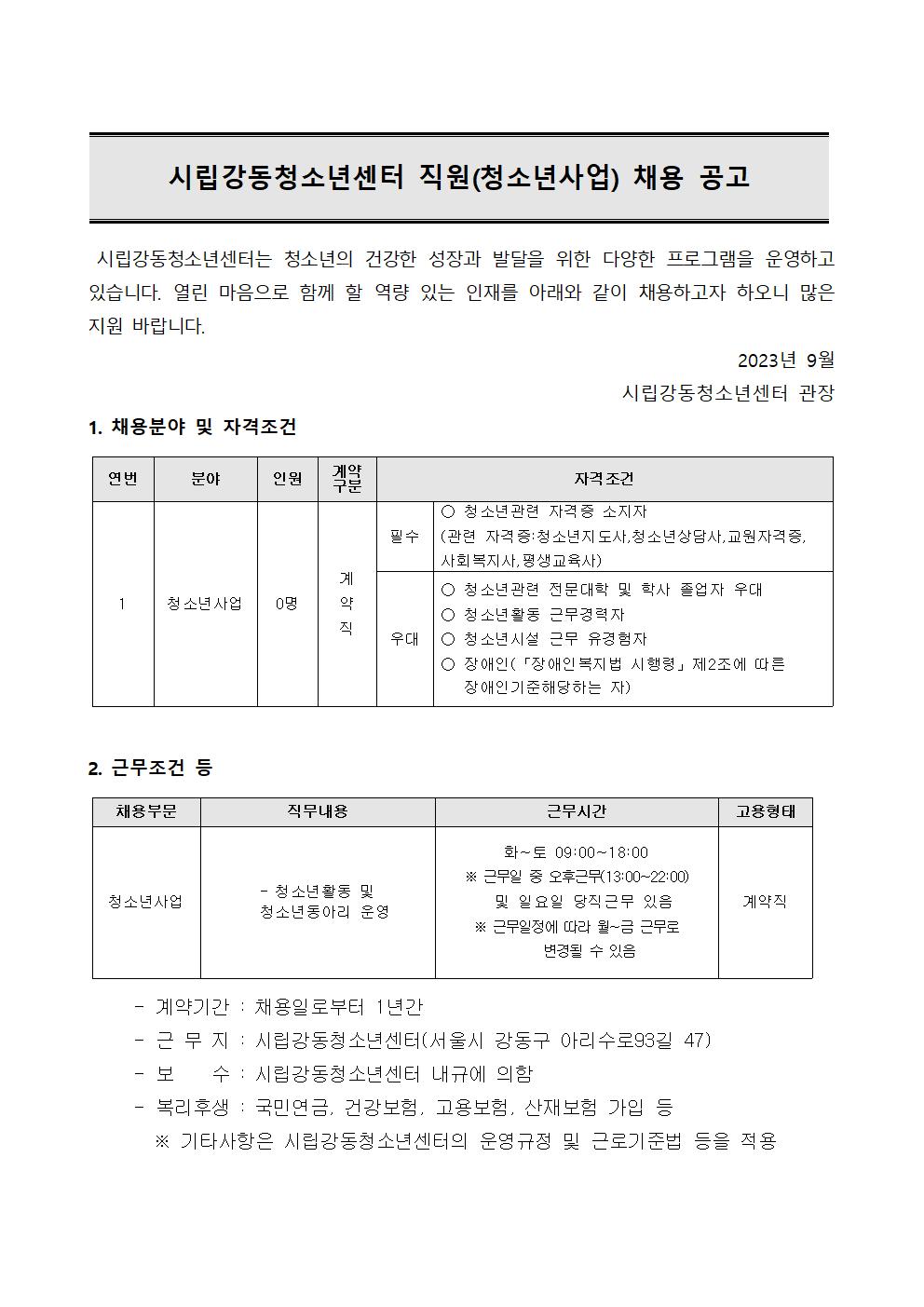 | ½Ã¸³°µ¿Ã»¼Ò³â¼¾ÅÍ Ã»¼Ò³â»ç¾÷ Á÷¿øÃ¤¿ë °ø°í(~10/4±îÁö) | |||