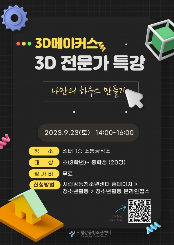 | 2023³â 3D¸ÞÀÌÄ¿½º ¸ðµ¨¸µ ±âÃÊ ¹× ³ª¸¸ÀÇ ¿ø·ë ÇϿ콺 ¸¸µé±â Âü°¡ÀÚ¸ðÁý! | |||
