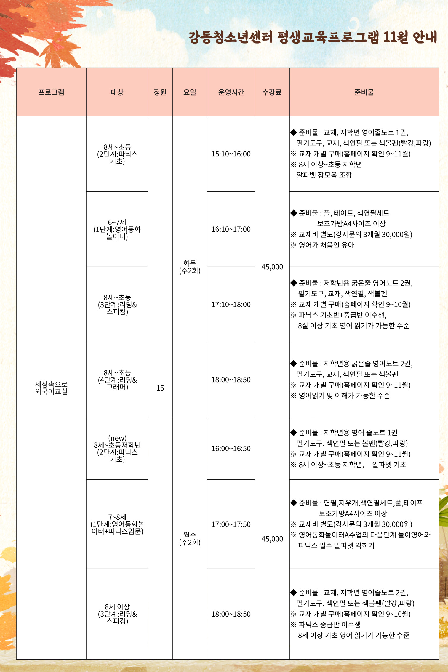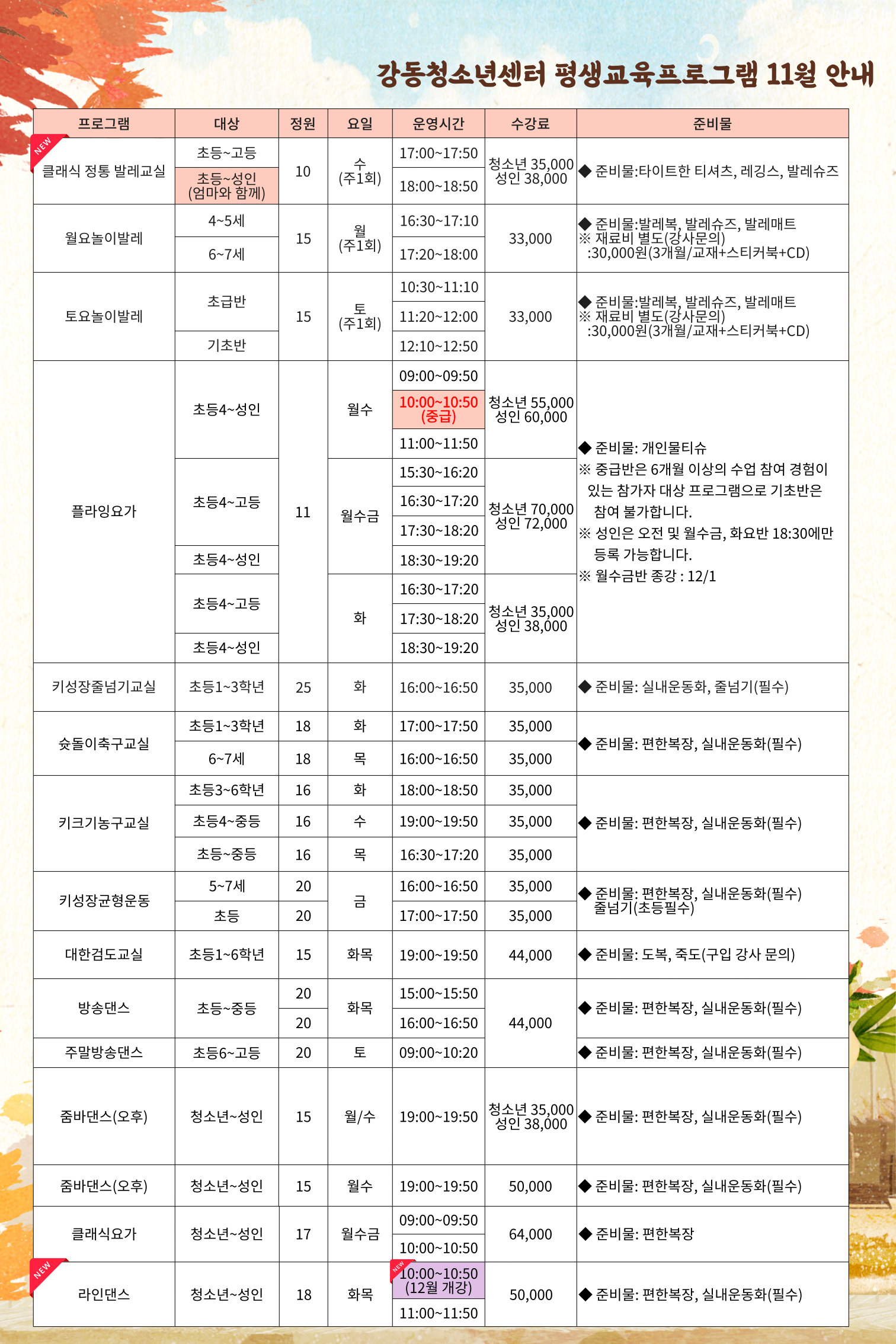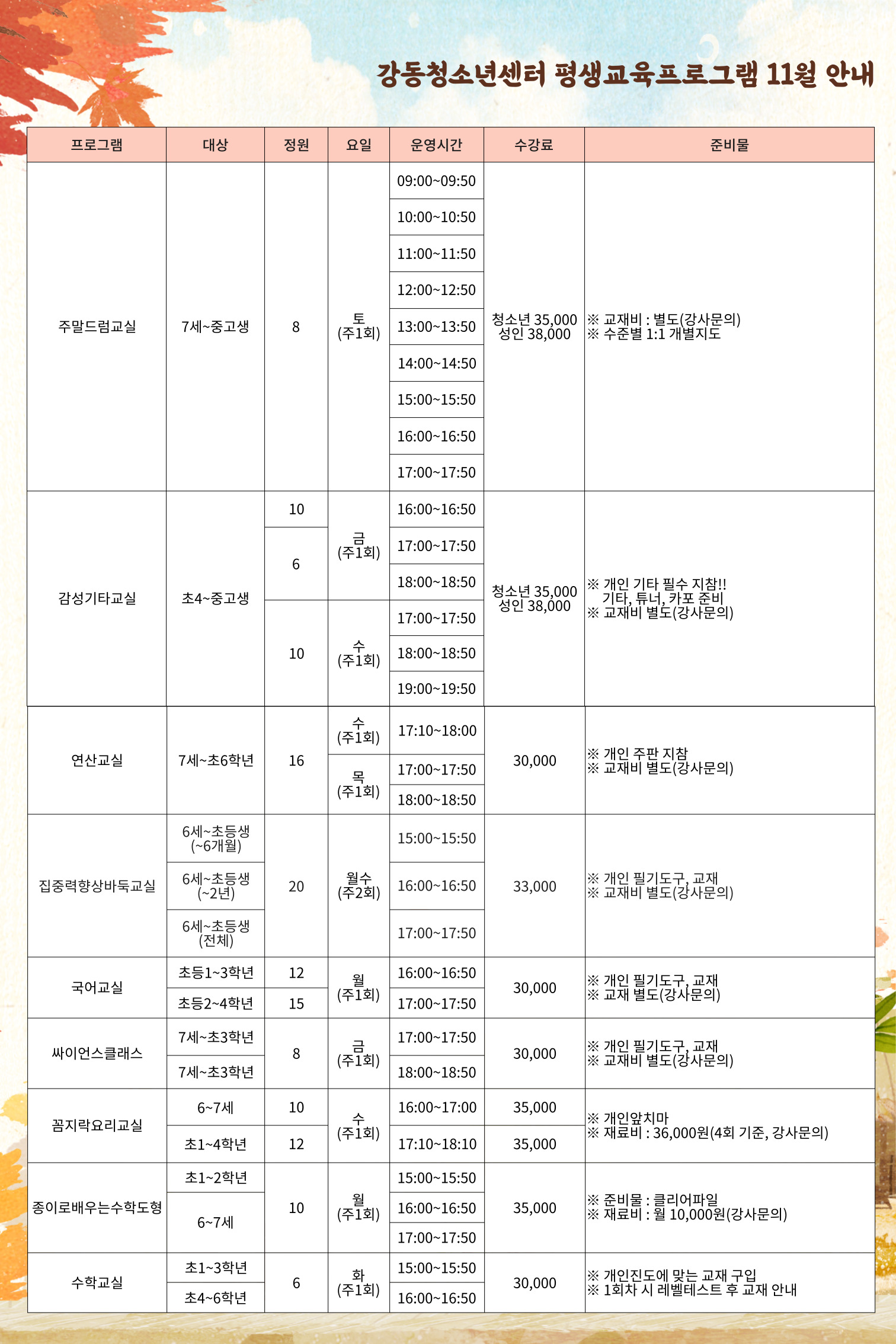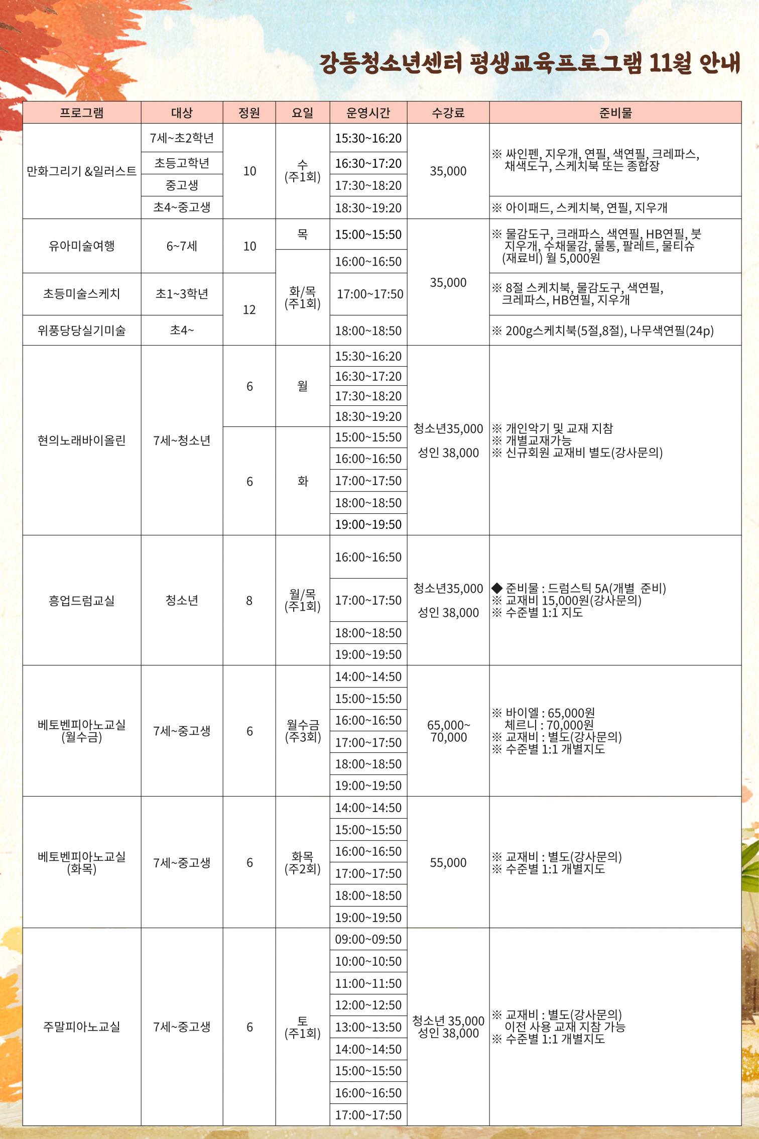 | 2023³â 11¿ù Æò»ý±³À°ÇÁ·Î±×·¥ ÇÁ·Î±×·¥ ¾È³»(±³À°¹®È»ç¾÷, »ýȰüÀ°»ç¾÷) | |||