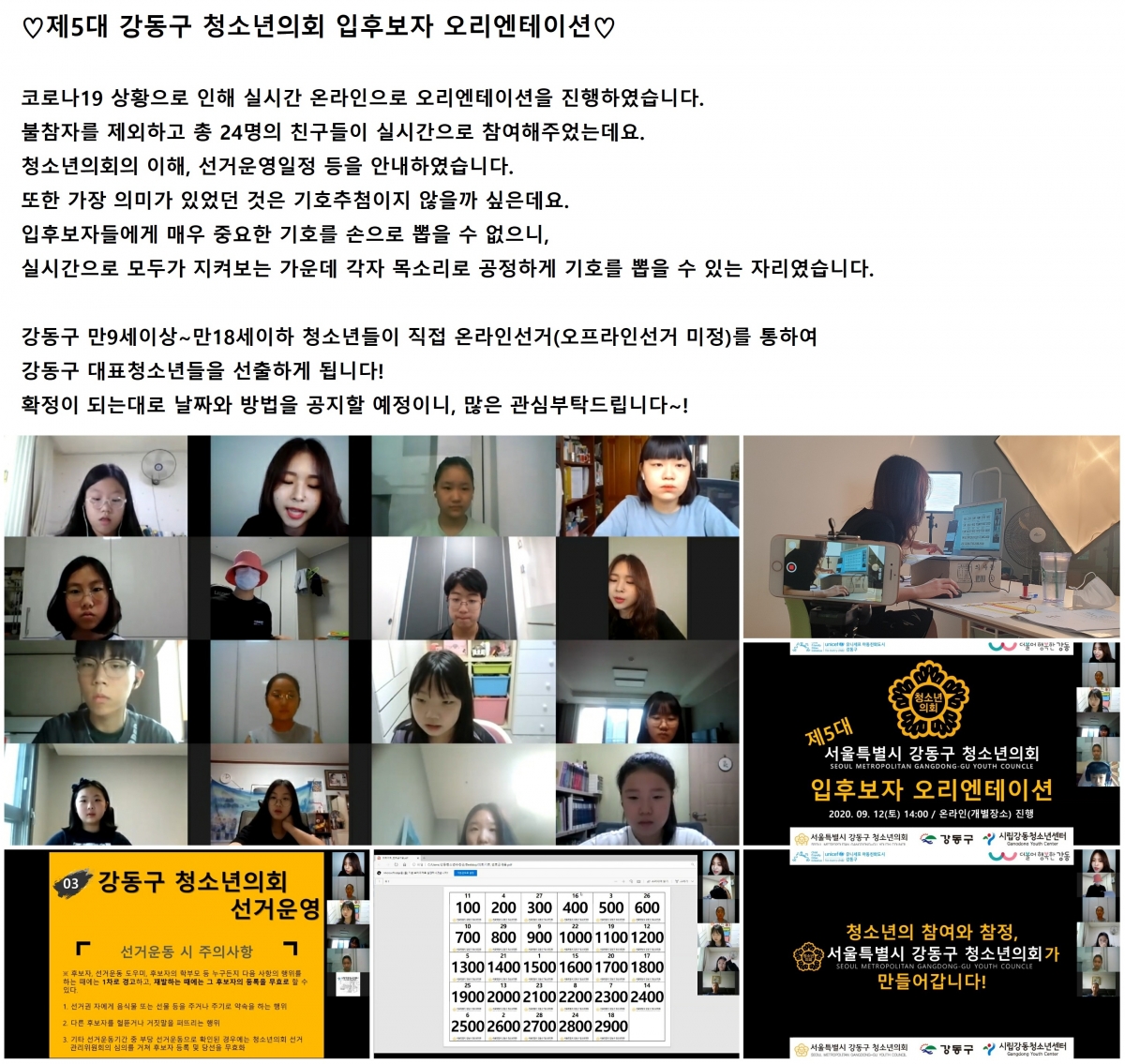 | Á¦5´ë °µ¿±¸ û¼Ò³âÀÇȸ ÀÔÈĺ¸ÀÚ ¿À¸®¿£Å×ÀÌ¼Ç | |||