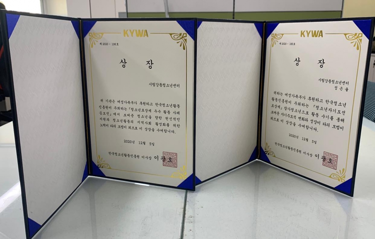 | ´ÙÀ½±Û | ½Ã¸³°µ¿Ã»¼Ò³â¼¾ÅÍ "2020³â û¼Ò³âÀÚ¿øºÀ»ç "ÃÖ¿ì¼öÅÍÀü - ¿©¼º°¡Á·ºÎ Àå°ü»ó" ¼ö»ó!" |