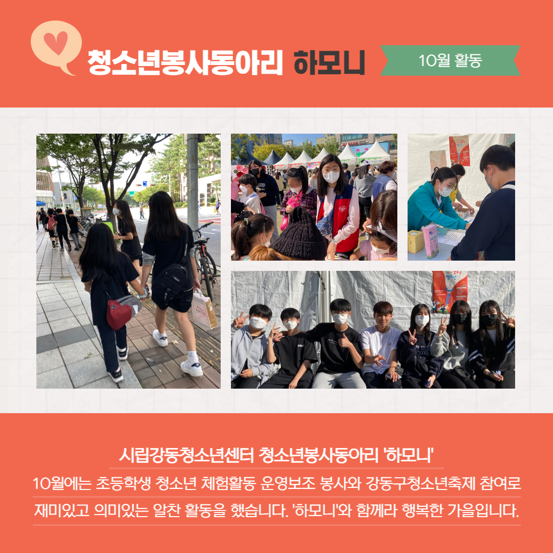 | 2022³â û¼Ò³âºÀ»çµ¿¾Æ¸® 'Çϸð´Ï' 10¿ù Á¤±âȰµ¿ | |||