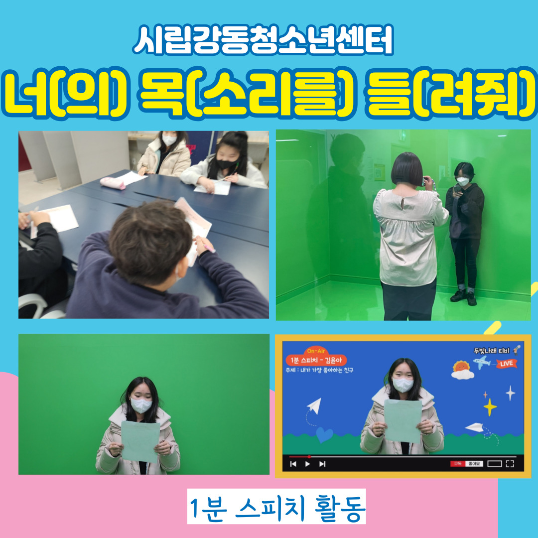 | ÀÛ¼ºÀÚ : ½Ã¸³°µ¿Ã»¼Ò³â¼¾ÅÍ(wagle1300@daum.net) ÀÛ¼ºÀÏ : 2022-12-26 Á¶È¸¼ö : 492 | |||