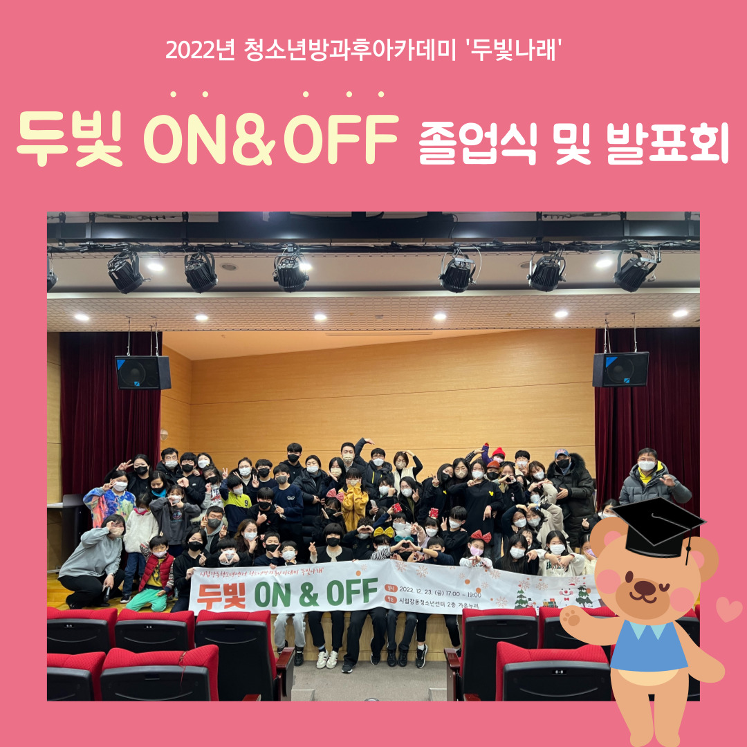 ¿ì¸® µÎºû³ª·¡ Ä£±¸µéÀÇ Á¹¾÷½Ä ¹× ¹ßǥȸ°¡ ÁøÇàµÇ¾ú½À´Ï´Ù. ¸¶·ç¹ÝÀÇ Á¹¾÷Àå ¼ö¿©¿Í ÇÔ²² ÇÑ ÇØ µ¿¾È 'µÎºû³ª·¡'¸¦ ºû³Â´ø û¼Ò³âµé¿¡°Ô »óÀå ¼ö¿©°¡ ÀÖ¾ú½À´Ï´Ù. »óÀº ¸ð¹ü»ó, ³ë·Â»ó, ºÐÀ§±â¸ÞÀÌÄ¿»óÀÌ ÀÖ¾ú´ä´Ï´Ù^^
