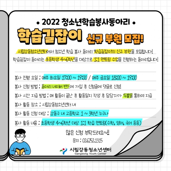 | 2022 û¼Ò³âÇнÀºÀ»çµ¿¾Æ¸® 'ÇнÀ±æÀâÀÌ' ½Å±Ô ºÎ¿ø ¸ðÁý | |||