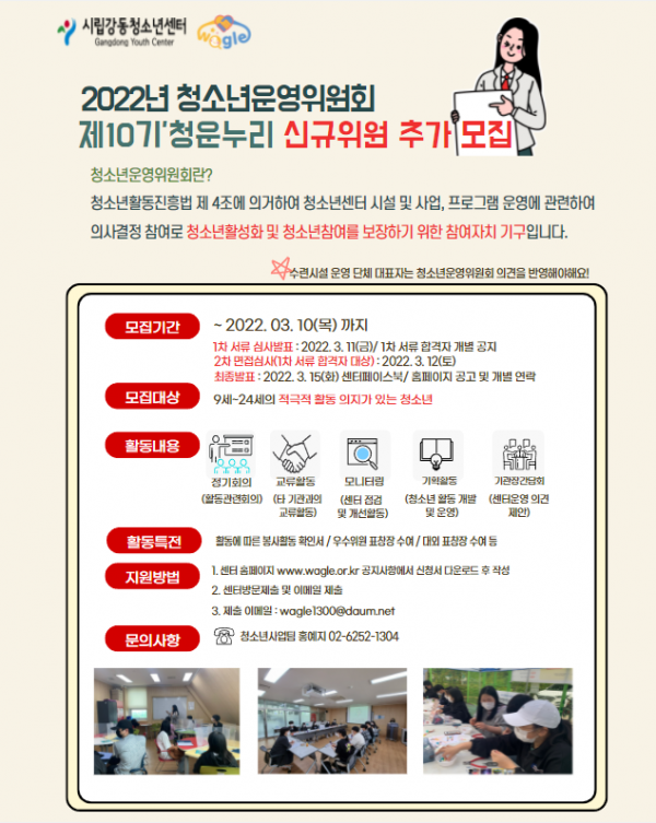 | 2022 û¼Ò³â¿î¿µÀ§¿øÈ¸ Á¦ 10±â û¿î´©¸® ½Å±ÔÀ§¿ø ¸ðÁý(Ãß°¡¸ðÁý) | |||