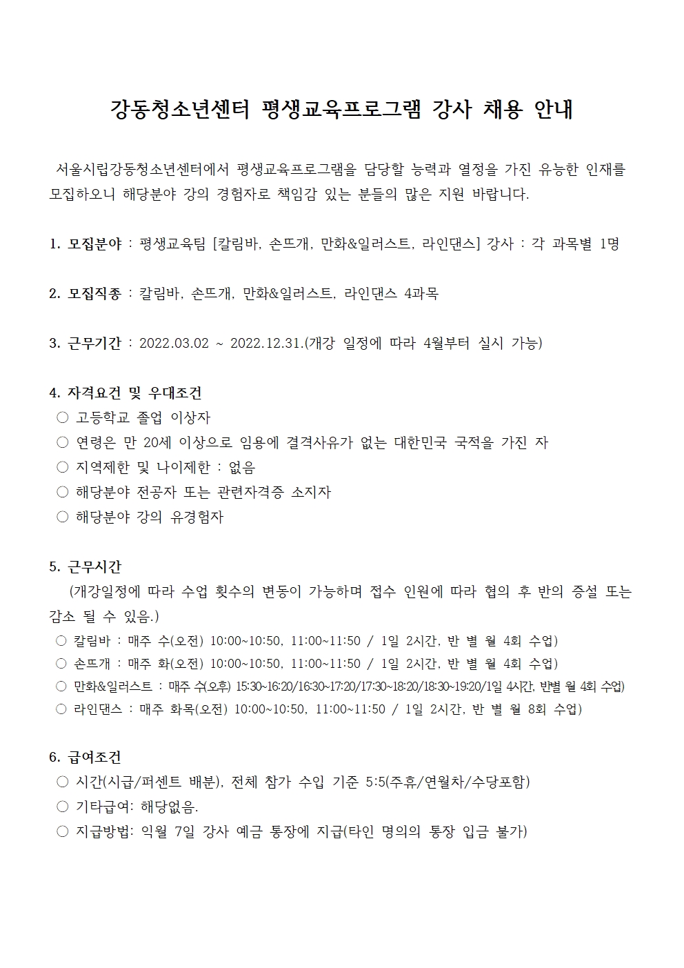 | ÀÛ¼ºÀÚ : ½Ã¸³°µ¿Ã»¼Ò³â¼¾ÅÍ(wagle1300@daum.net) ÀÛ¼ºÀÏ : 2022-02-09 Á¶È¸¼ö : 4651 | |||