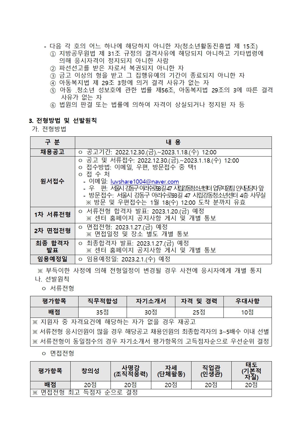 | °µ¿Ã»¼Ò³â¼¾ÅÍ(û¼Ò³â»ç¾÷ ¹× û¼Ò³â¹æ°úÈľÆÄ«µ¥¹Ì´ãÀÓ) Á÷¿ø ä¿ë °ø°í | |||