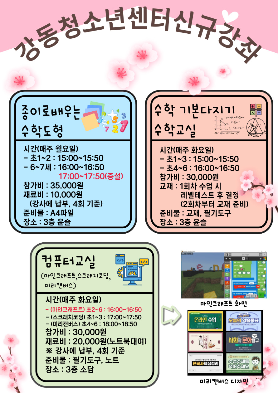 | ÀÛ¼ºÀÚ : ½Ã¸³°µ¿Ã»¼Ò³â¼¾ÅÍ(wagle1300@daum.net) ÀÛ¼ºÀÏ : 2023-03-17 Á¶È¸¼ö : 1957 | |||