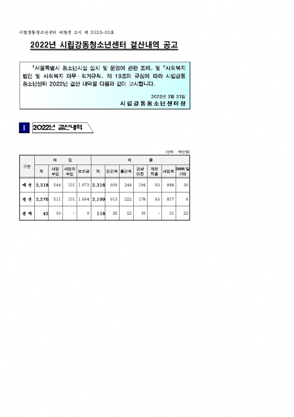 | ÆÄÀÏ÷ºÎ : [¿¹°á»ê°ø°í 2023-02] 2022³â °á»ê ³»¿ª_°µ¿001.jpg | |||