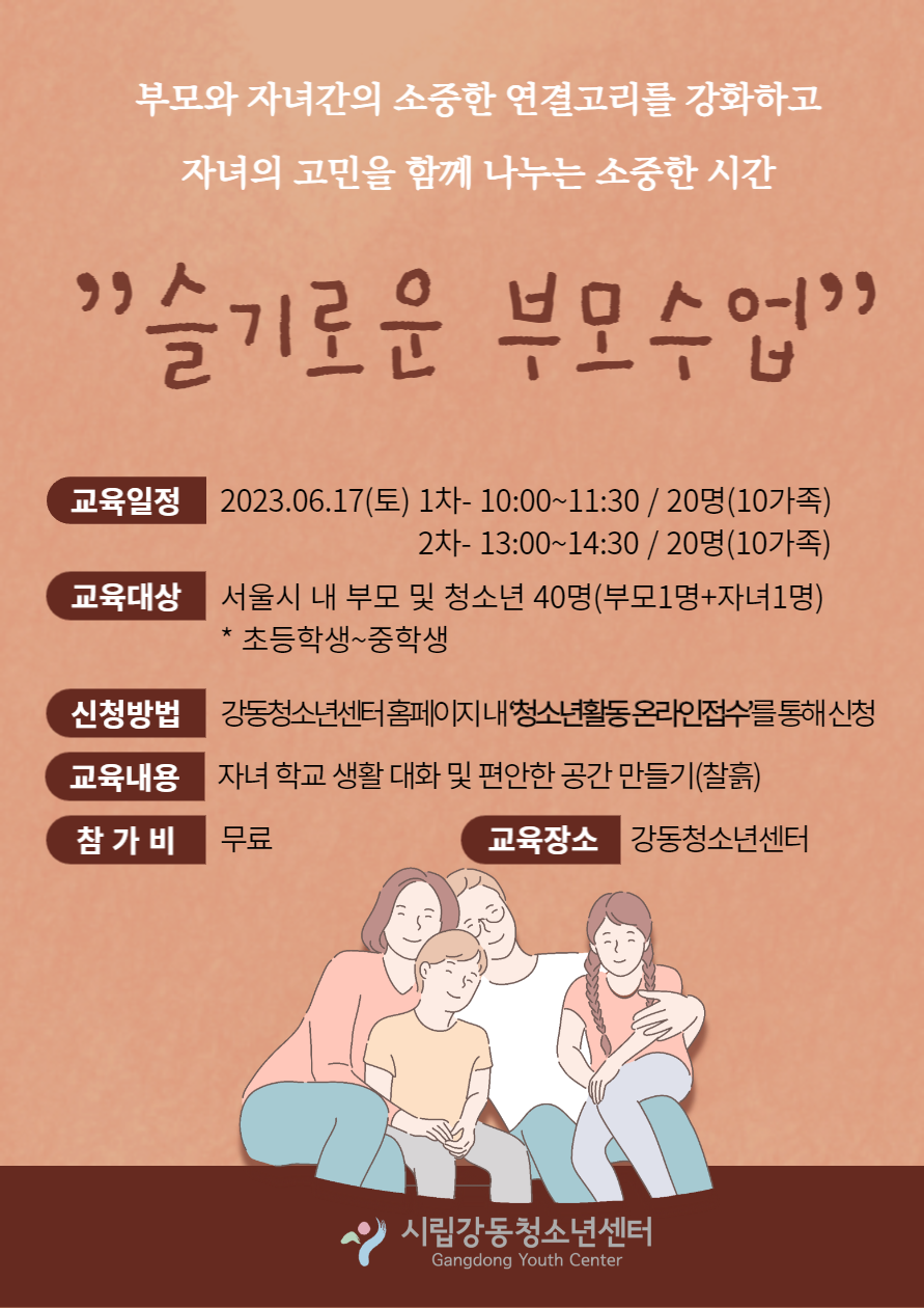 | ¡Ú2023³â ºÎ¸ð¿Í ÀÚ³à¿Í ÇÔ²²ÇÏ´Â '½½±â·Î¿î ºÎ¸ð¼ö¾÷' ¼±Âø¼ø Âü°¡ÀÚ ¸ðÁý¡Ú | |||