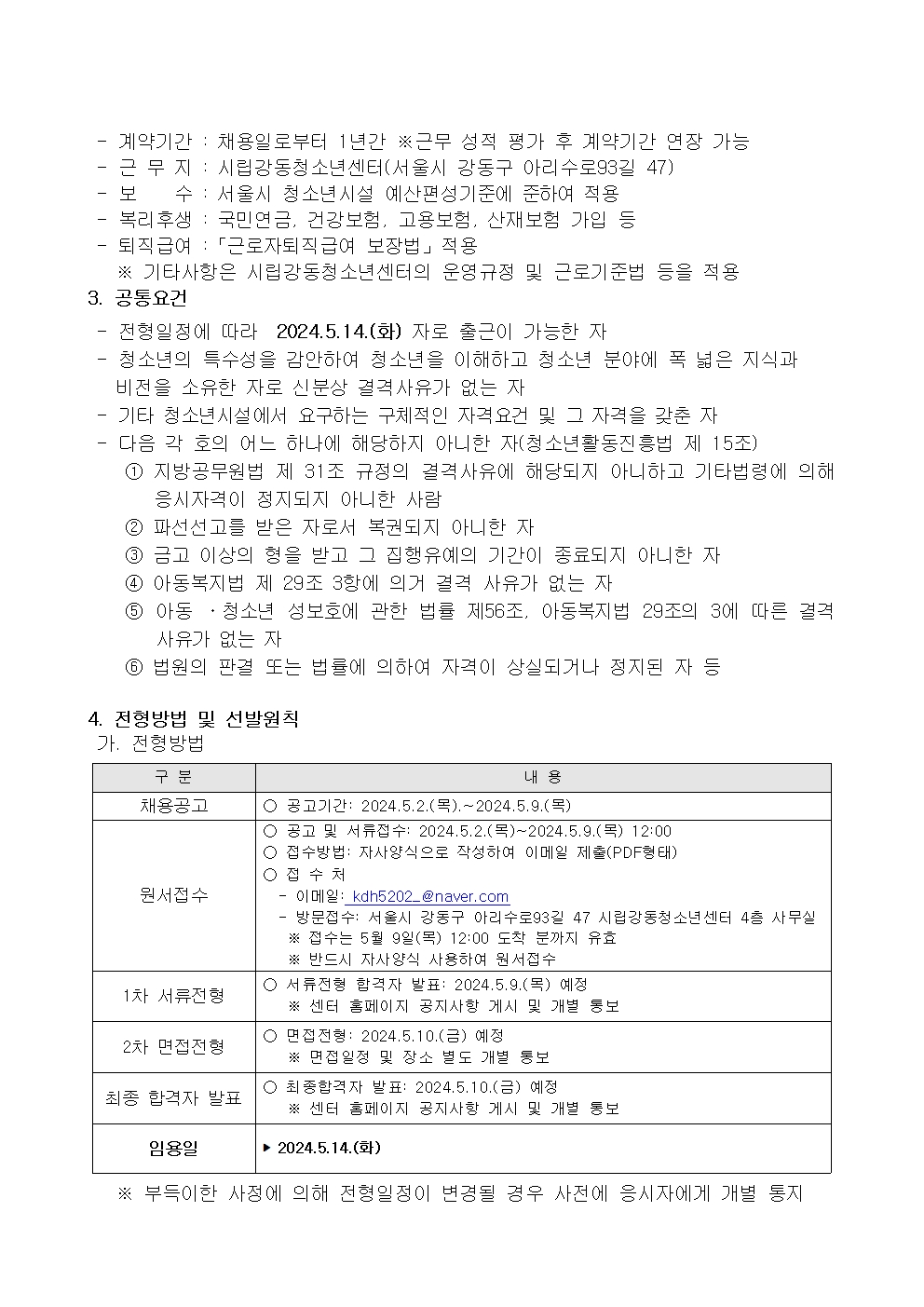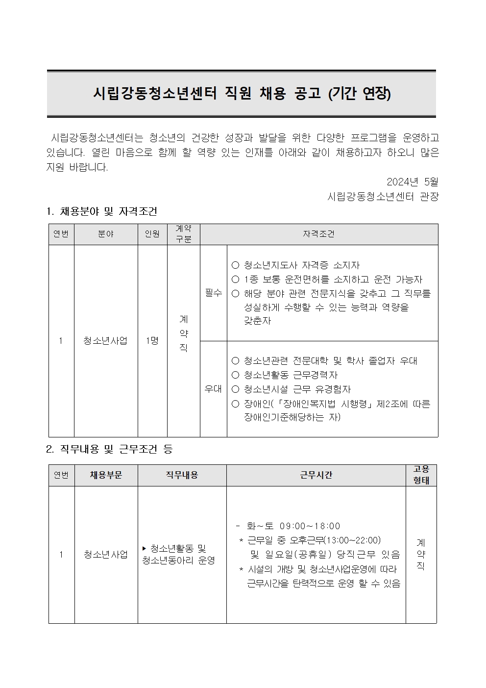| ½Ã¸³°µ¿Ã»¼Ò³â¼¾ÅÍ Á÷¿ø(û¼Ò³â»ç¾÷) ä¿ë ±â°£¿¬Àå °ø°í | |||