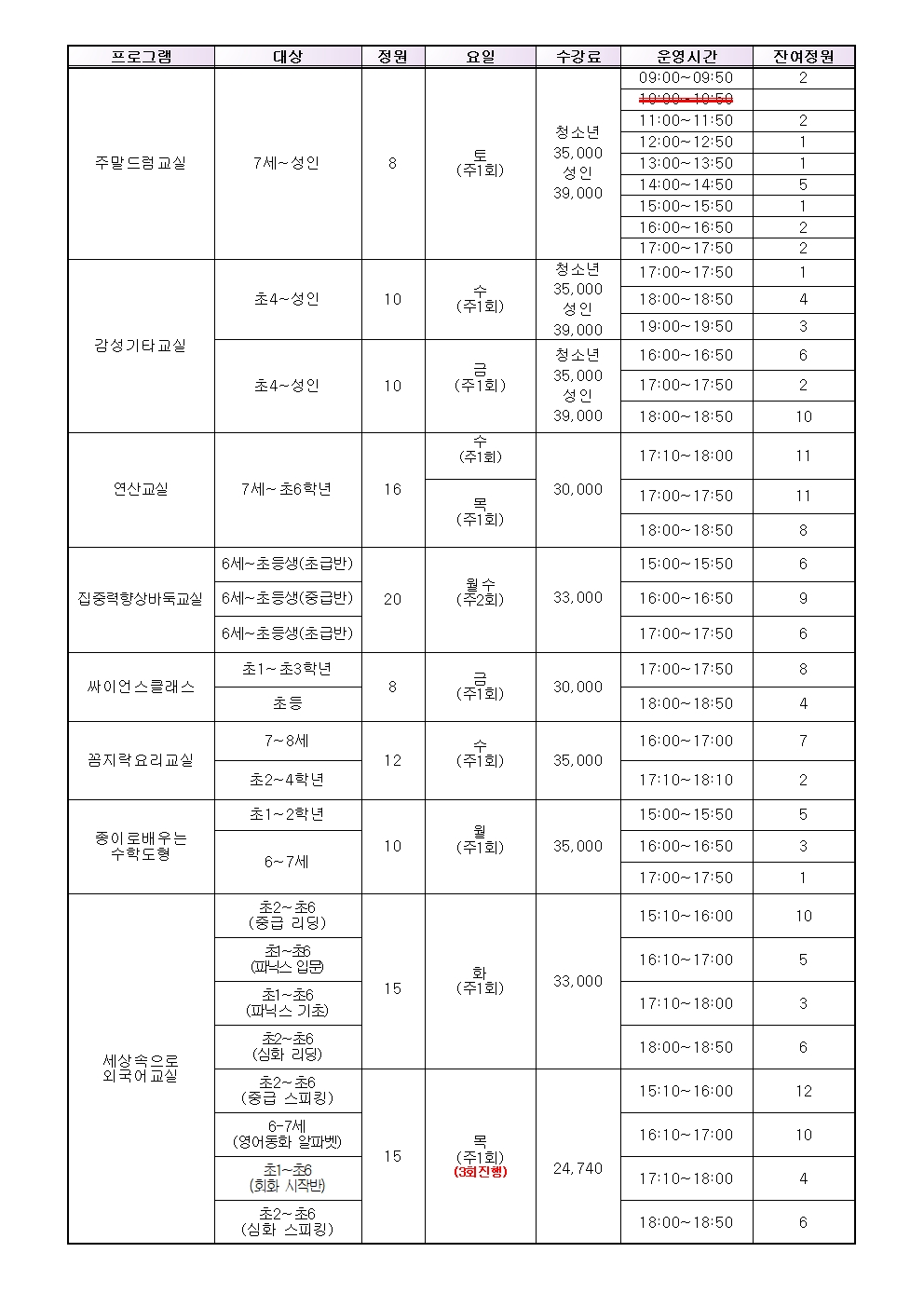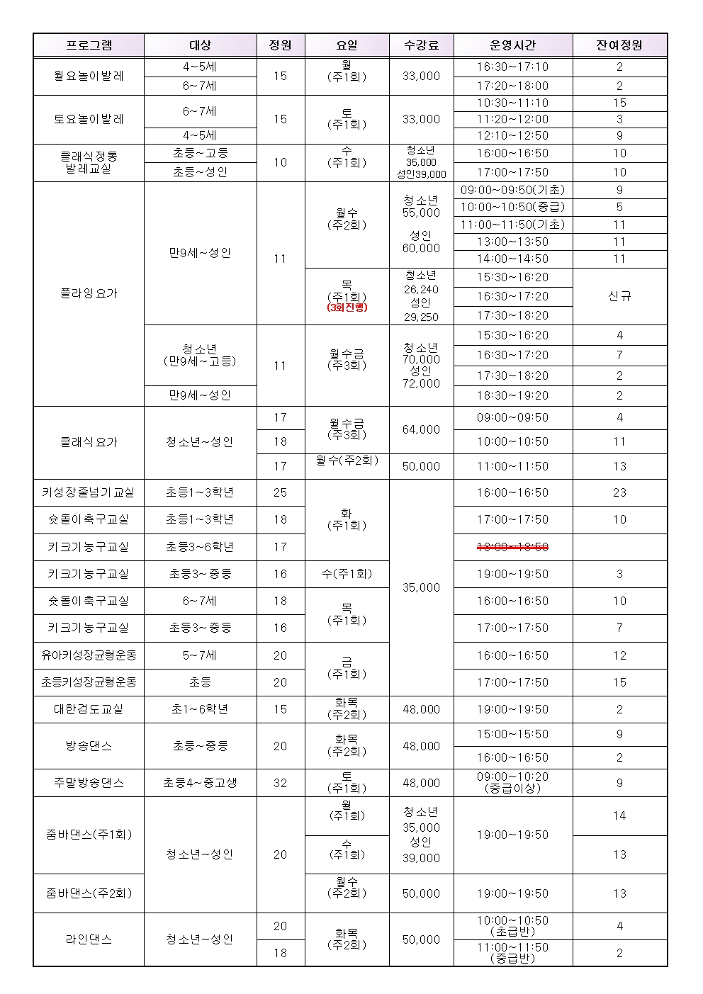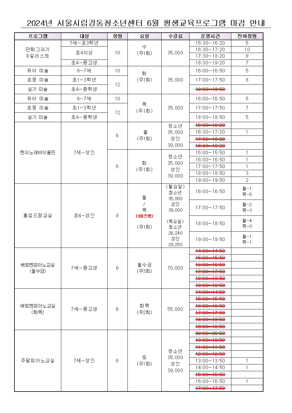 5¿ù 24ÀÏ 18½Ã ±âÁØÀ¸·Î ±âÁ¸È¸¿ø Á¢¼ö¸¦ ¸¶°¨ÇÏ¿´½À´Ï´Ù. ¡Ú2024³â 6¿ù Æò»ý±³À°ÇÁ·Î±×·¥ ½Å±Ôȸ¿ø °ÁÂÁ¢¼ö´Â 5¿ù25ÀÏ(Åä) ¿ÀÀü9½Ã(ÀÎÅͳÝ,¹æ¹®Á¢¼ö µ¿ÀÏ)ºÎÅÍ ½ÃÀÛÇÕ´Ï´Ù.¡Ú ÇÁ·Î±×·¥ ȸ¿ø ½Å±Ô Á¢¼ö´Â ¼±Âø¼øÀ¸·Î ÁøÇàµÇ¸ç ¹æ¹® Á¢¼ö½Ã ¼ø¹ø¿¡ µû¶ó Á¢¼ö¸¦ ½ÃÀÛÇÕ´Ï´Ù. °Á º° ÀÜ¿© ÀοøÀ» È®ÀÎÇϽðí, 5/25(Åä) ÀÎÅͳÝÀ¸·Î Á¢¼ö ¶Ç´Â ¼¾ÅÍ¿¡ Á÷Á¢ ¹æ¹® ÇÏ¿© Áֽñ⠹ٶø´Ï´Ù. ½Å±Ôȸ¿ø Á¢¼öÀÏ¿¡´Â ÇöÀå Á¢¼ö¿Í ÀÎÅÍ³Ý Á¢¼ö°¡ µ¿½Ã¿¡ ÁøÇàµË´Ï´Ù. ¡Ú¼ö°ÀÚ¸í(¾ÆÀÌÀ̸§)À¸·Î ÀÎÅÍ³Ý È¸¿ø °¡ÀÔÀ» ¸ÕÀú ÁøÇàÇØ Áֽñ⠹ٶø´Ï´Ù.(¿¬¶ôó´Â ºÎ¸ð´Ô ¹øÈ£·Î ±âÀç)¡Ú ¼¾ÅͰ¡ óÀ½À̽нűÔȸ¿øÀº ¼ø¼ ±â´Ù¸®½Ã´Â µ¿¾È ½Å±Ôȸ¿ø ½Åû¼¿Í ÀÎÅÍ³Ý È¸¿ø °¡ÀÔÀ» µ¿½Ã¿¡ ÁøÇàÇØÁֽðí, ¹øÈ£Ç¥¿Í ÇÔ²² ¾È³»µ¥½ºÅ©¿¡ ÀÎÅͳÝÀ¸·Î °¡ÀÔÇÏ¿´´Ù°í ¸»¾¸ Àü´ÞÇØÁÖ½Ã±æ ¹Ù¶ø´Ï´Ù. ÁÖÀÇ»çÇ×!!!! -¹øÈ£Ç¥ ¼ö·É ÈÄ ´ë±âÇϸé¼, ÀÎÅÍ³Ý È¸¿ø°¡ÀÔ ÈÄ ÀÎÅÍ³Ý Á¢¼ÓÇϼż ¼ö°µî·ÏÀ» 9½ÃºÎÅÍ ÁøÇàÇϵµ·Ï ±Ç°íÇÕ´Ï´Ù. ¿ÀÀü9½Ã¿¡ ÇöÀå°ú ÀÎÅͳݿ¡¼ µ¿½Ã Á¢¼ÓÀÌ °¡´ÉÇϱ⠶§¹®¿¡, ÇöÀåµî·ÏÀÌ ¿ì¼±ÀÌ ¾Æ´Ñ °áÁ¦ ¼ø¼´ë·Î ÁøÇàÀÌ µË´Ï´Ù. (ÇöÀå¿¡¼ °Á µî·ÏÁß¿¡¶óµµ ÀÎÅͳݿ¡¼ ÁøÇàÇÏ´Â ºÐÀÌ ¸ÕÀú °áÁ¦°¡ ÁøÇàµÉ ¼ö ÀÖ½À´Ï´Ù.) ¡Úȸ¿ø(½Å±Ô ¹× ±âÁ¸). (ÇØ´çÀÚ-->¸¸9¼¼~24¼¼.û¼Ò³â) -´ÙµÕÀÌÄ«µå ¼ÒÁöÀÚ:½Ç¹° ÇÃ¶ó½ºÆ½ Ä«µå.(½Å±Ôȸ¿øÀº ÃÖ±Ù ÇÑ´ÞÀ̳» ¹ß±ÞÇÑ Áֹεî·Ïµîº» ÁöÂü) -¼ö±ÞÀÚ:¼ö±ÞÀÚ¼·ù.(½Å±Ôȸ¿øÀº ÃÖ±Ù ÇÑ´ÞÀ̳» ¹ß±ÞÇÑ Áֹεî·Ïµîº» ÁöÂü) ²À ÁöÂüÇÏ½Ã°í ¹æ¹®ÇÏ¿© ÁֽʽÿÀ. [°¨¸é´ë»ó ½Å±Ô ȸ¿ø ÁÖÀÇ»çÇ×] 1. ÀÎÅÍ³Ý ½Å±ÔÁ¢¼ö½Ã ÇÒÀÎÀü ±Ý¾× °áÁ¦ 2. 25ÀÏ ¼¾Å͹湮-> ÇÒÀÎ ±Ý¾×À¸·Î Àç°áÁ¦ 3. ÀÎÅÍ³Ý Á¢¼öºÐ Ãë¼Ò 4. Áغñ¹° : ´ÙµÕÀÌ ½Ç¹° Ä«µå(ÀÚ³à À̸§+»ý³â¿ùÀÏ Ç¥±âµÈ Ä«µå, ½Å¿ëÄ«µåX) + Áֹεî·Ïµîº»(ÃÖ±Ù1°³¿ù À̳» ¹ß±Þ) ¼ö±ÞÀÚ ÇØ´ç¼·ù + Áֹεî·Ïµîº»(ÃÖ±Ù1°³¿ù À̳» ¹ß±Þ)