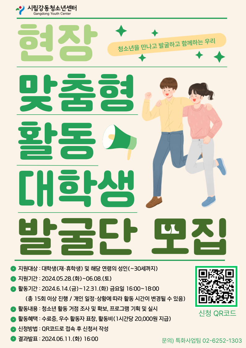 ÀÛ¼ºÀÚ : ½Ã¸³°­µ¿Ã»¼Ò³â¼¾ÅÍ(wagle1300@daum.net) ÀÛ¼ºÀÏ : 2024-05-29 Á¶È¸¼ö : 364