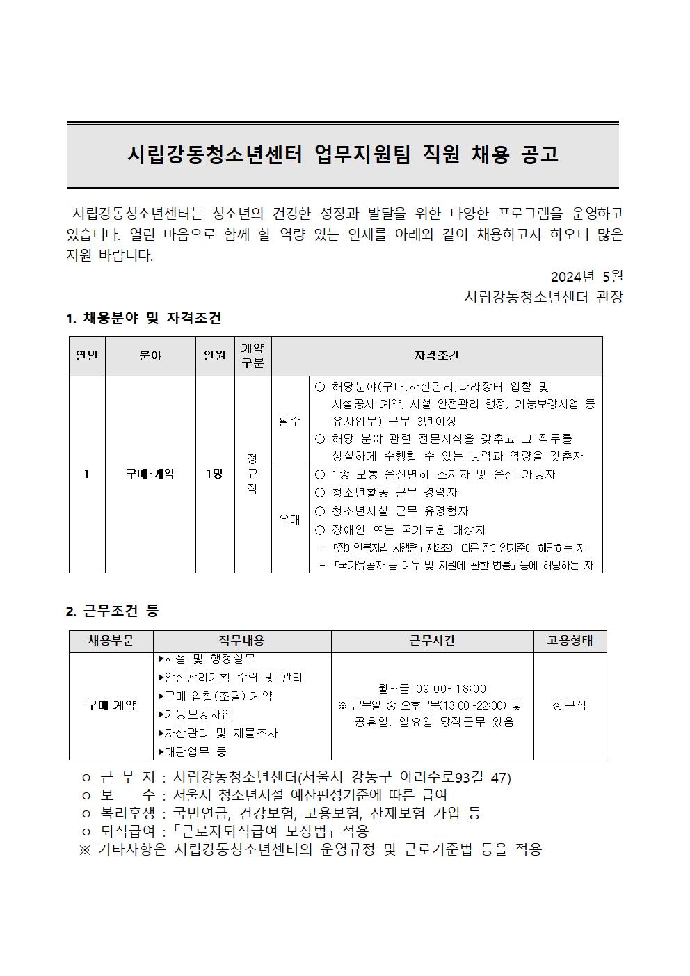 | ½Ã¸³°µ¿Ã»¼Ò³â¼¾ÅÍ Á÷¿ø(±¸¸Å°è¾à) °ø°í | |||