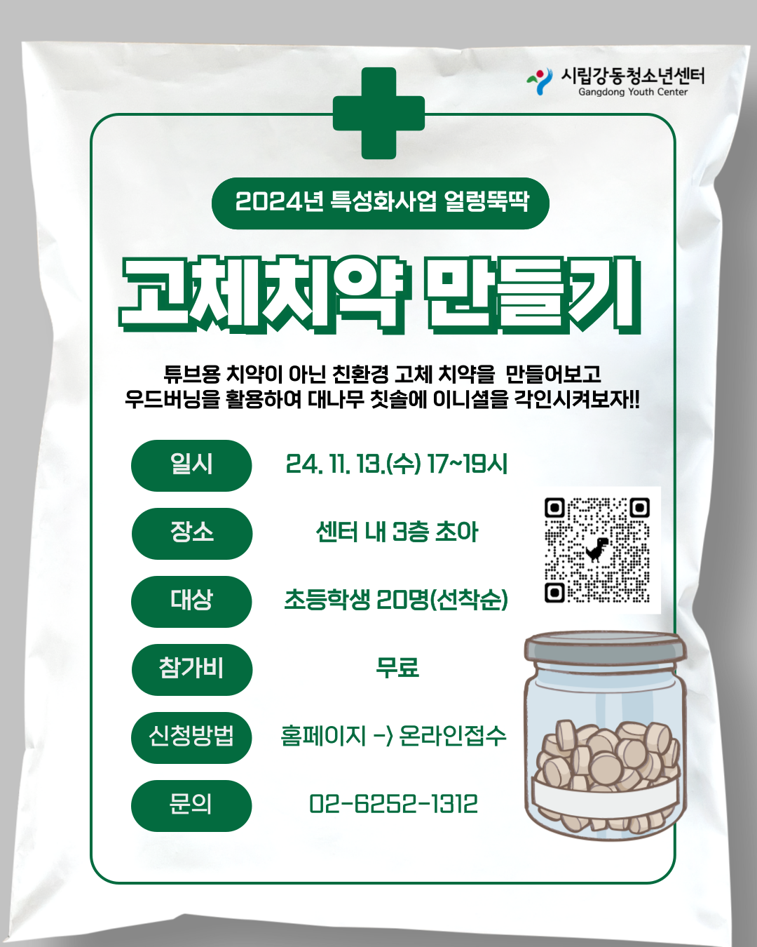 | (¸¶°¨)2024³â Ư¼ºÈ»ç¾÷ ¾ó··¶Òµü - °íüġ¾à ¸¸µé±â 11¿ù Âü°¡ÀÚ ¸ðÁý | |||