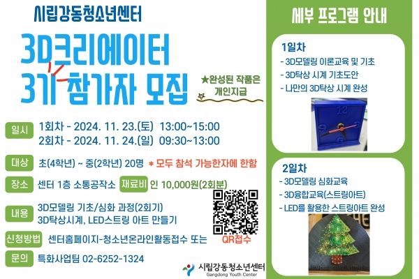 | (¸¶°¨)3DÅ©¸®¿¡ÀÌÅÍ 3±â Âü°¡ÀÚ¸ðÁý(3D½Ã°è¸¸µé±â, ½ºÆ®¸µ¾ÆÆ® °úÁ¤) | |||