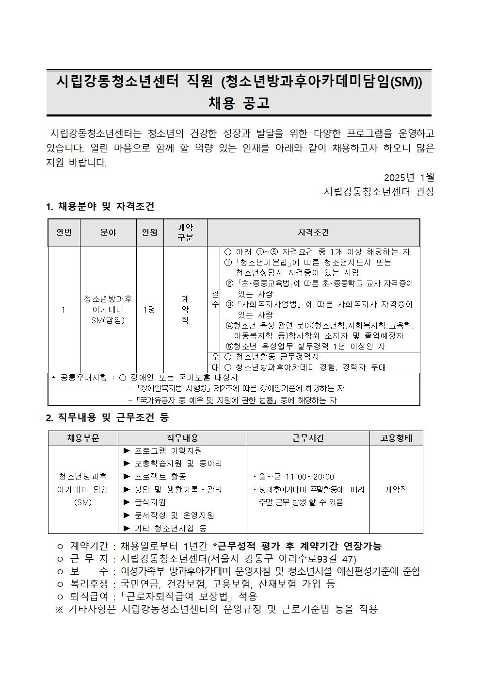 | [±¸ÀÎ]½Ã¸³°µ¿Ã»¼Ò³â¼¾ÅÍ Á÷¿ø(¹æ°úÈľÆÄ«µ¥¹ÌSM) ä¿ë °ø°í | |||
