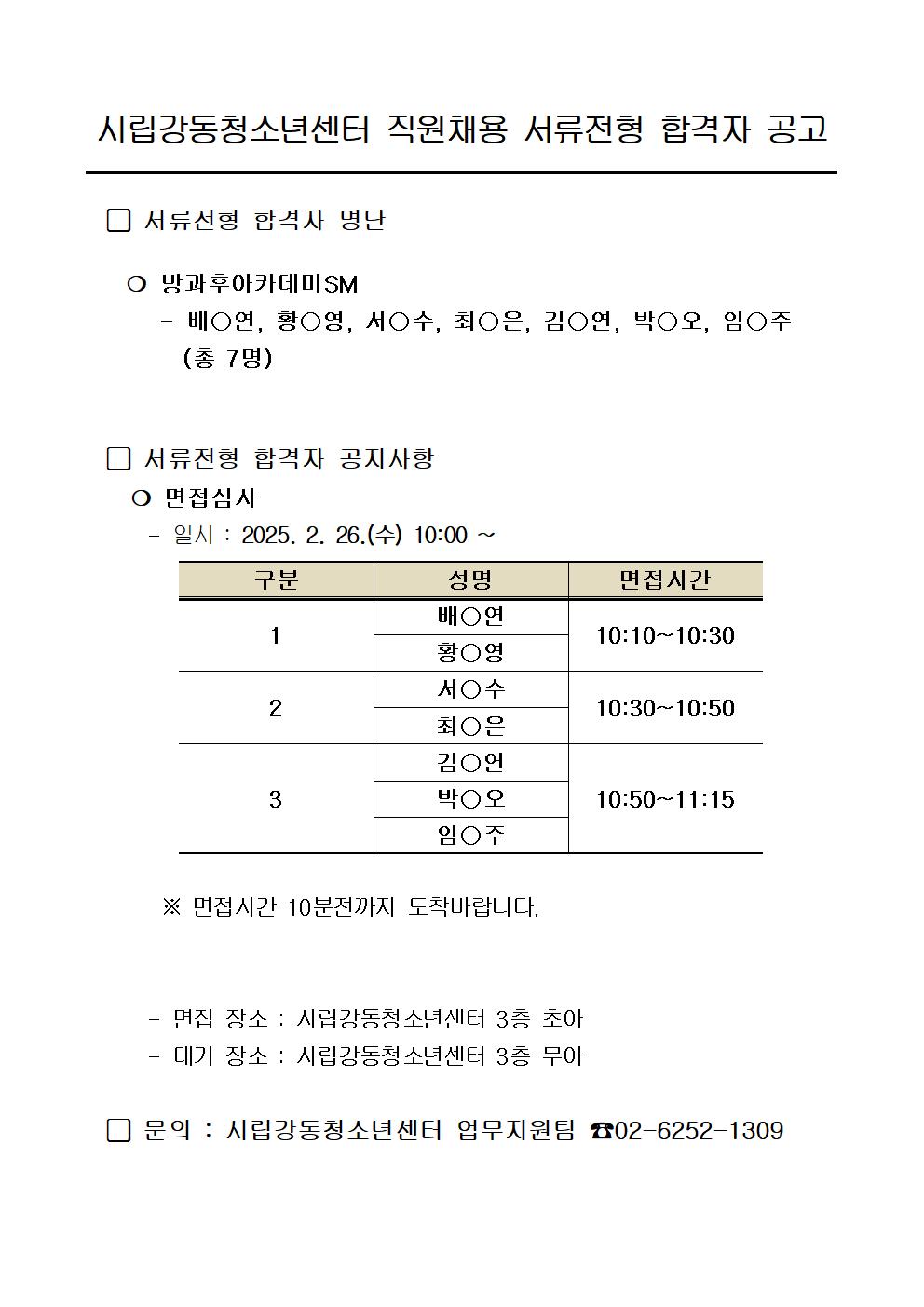 | ½Ã¸³°µ¿Ã»¼Ò³â¼¾ÅÍ Á÷¿øÃ¤¿ë ¼·ùÀüÇü ÇÕ°ÝÀÚ °ø°í | |||