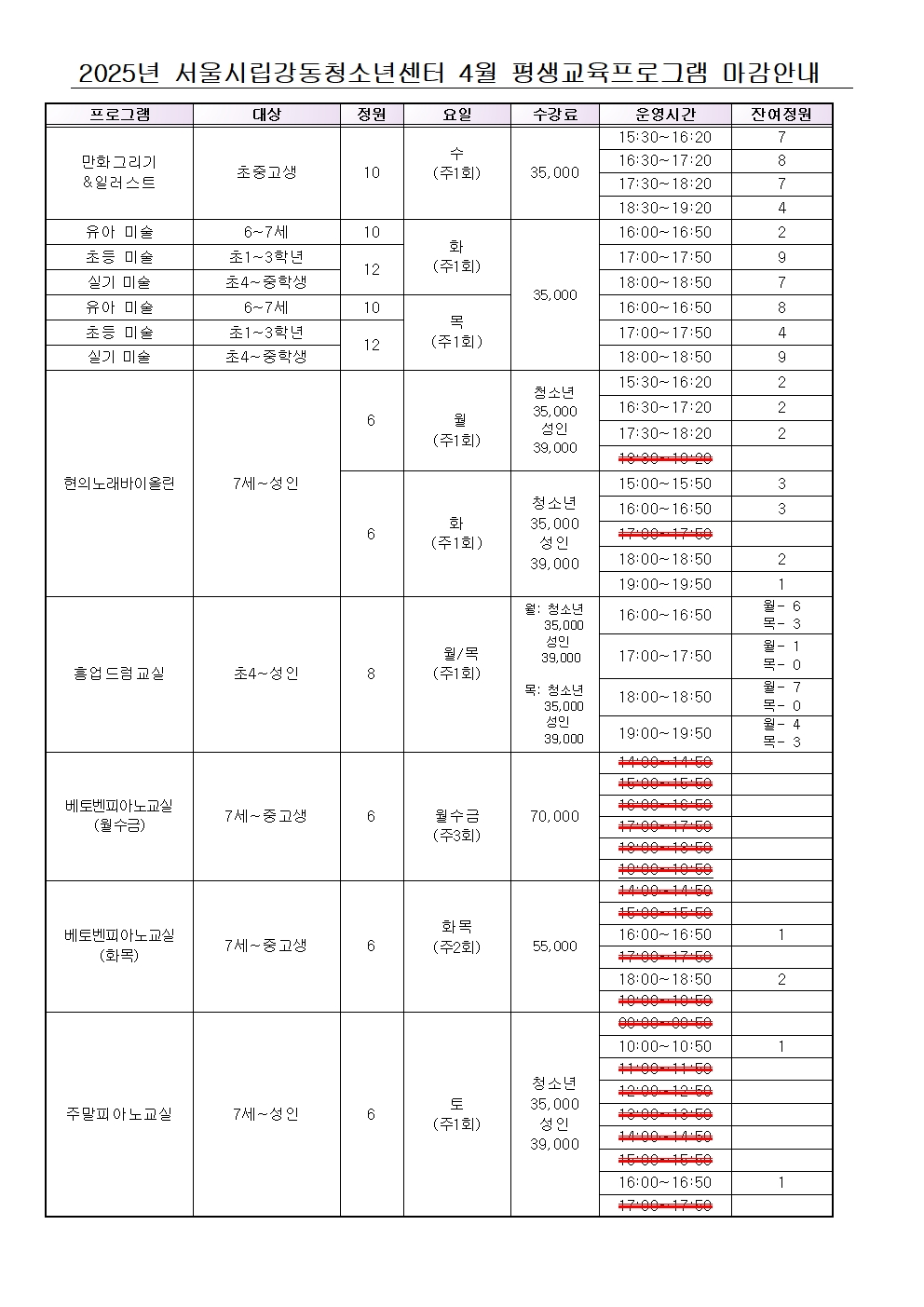 2025. 4¿ù Æò»ý±³À°ÇÁ·Î±×·¥ ¸¶°¨ ÇöȲ(2025.03.24. 18:00±âÁØ)