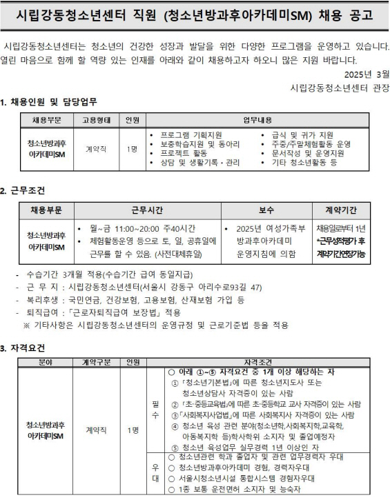 | ½Ã¸³°µ¿Ã»¼Ò³â¼¾ÅÍ Á÷¿øÃ¤¿ë °ø°í | |||