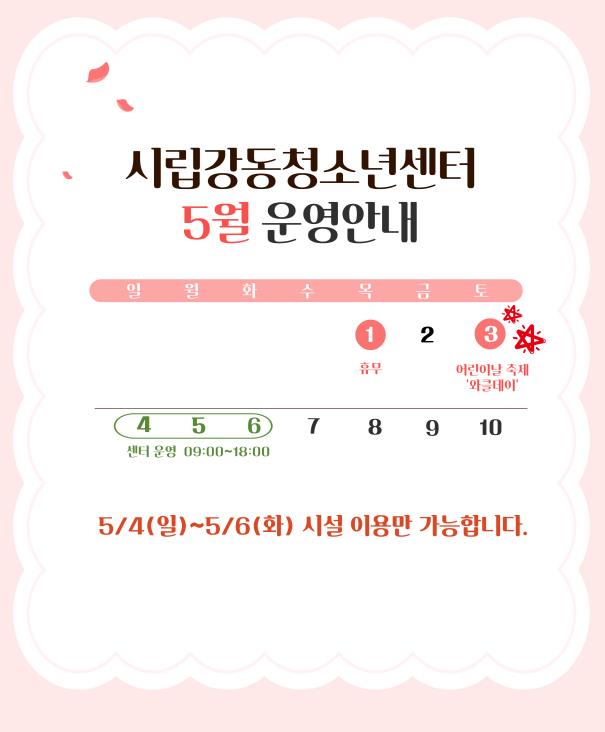 | ½Ã¸³°µ¿Ã»¼Ò³â¼¾ÅÍ 5¿ù ¿î¿µ ¾È³» | |||