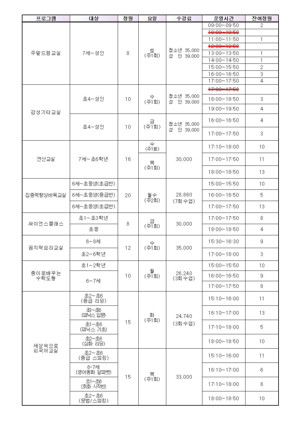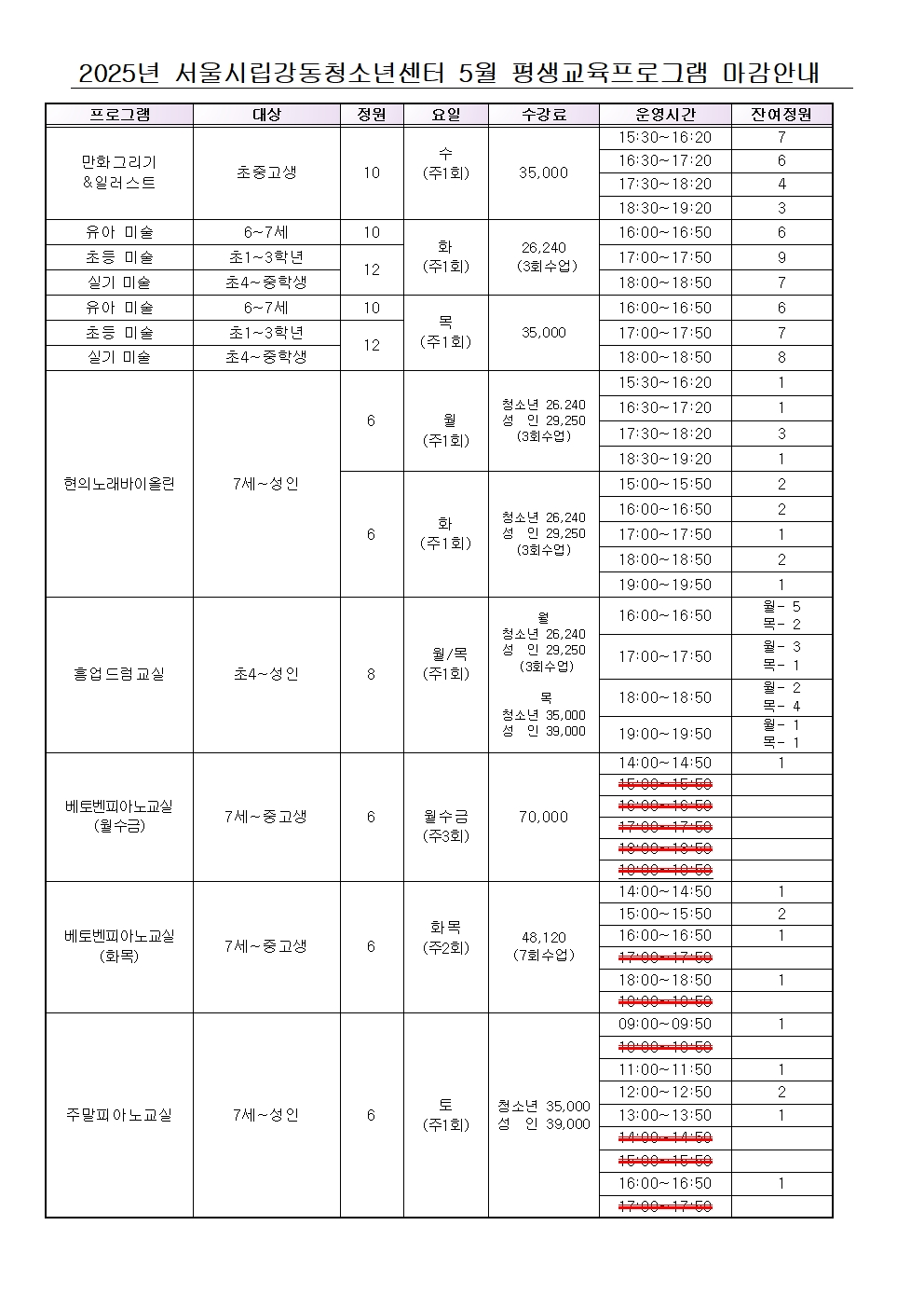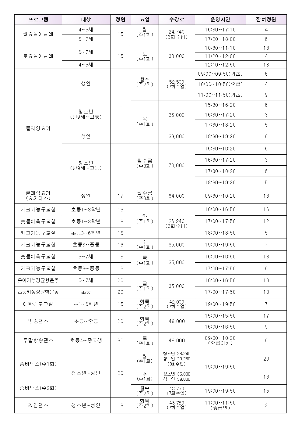 4¿ù 24ÀÏ 18½Ã ±âÁØÀ¸·Î ±âÁ¸È¸¿ø Á¢¼ö¸¦ ¸¶°¨ÇÏ¿´½À´Ï´Ù. ¡Ú2025³â 5¿ù Æò»ý±³À°ÇÁ·Î±×·¥ ½Å±Ôȸ¿ø °ÁÂÁ¢¼ö´Â 4¿ù 25ÀÏ(±Ý) ¿ÀÀü9½Ã(ÀÎÅÍ³Ý Á¢¼ö, ¹æ¹®Á¢¼ö µ¿ÀÏ)ºÎÅÍ ½ÃÀÛÇÕ´Ï´Ù.¡Ú ÇÁ·Î±×·¥ ȸ¿ø ½Å±Ô Á¢¼ö´Â ¼±Âø¼øÀ¸·Î ÁøÇàµÇ¸ç ¹æ¹® Á¢¼ö½Ã ¼ø¹ø¿¡ µû¶ó Á¢¼ö¸¦ ½ÃÀÛÇÕ´Ï´Ù. °Á º° ÀÜ¿© ÀοøÀ» È®ÀÎÇϽðí, 4/25(±Ý) ÀÎÅÍ³Ý Á¢¼ö ¶Ç´Â ¼¾ÅÍ¿¡ Á÷Á¢ ¹æ¹® ÇÏ¿© Áֽñ⠹ٶø´Ï´Ù. ½Å±Ôȸ¿ø Á¢¼öÀÏ¿¡´Â ÇöÀå Á¢¼ö¿Í ÀÎÅÍ³Ý Á¢¼ö°¡ µ¿½Ã¿¡ ÁøÇàµË´Ï´Ù. ¡Ú¼ö°ÀÚ¸í(¾ÆÀÌÀ̸§)À¸·Î ÀÎÅÍ³Ý È¸¿ø °¡ÀÔÀ» ¸ÕÀú ÁøÇàÇØ Áֽñ⠹ٶø´Ï´Ù.(¿¬¶ôó´Â ºÎ¸ð´Ô ¹øÈ£·Î ±âÀç)¡Ú ¼¾ÅͰ¡ óÀ½À̽нűÔȸ¿øÀº ¼ø¼ ±â´Ù¸®½Ã´Â µ¿¾È ½Å±Ôȸ¿ø ½Åû¼¿Í ÀÎÅÍ³Ý È¸¿ø °¡ÀÔÀ» µ¿½Ã¿¡ ÁøÇàÇØÁֽðí, ¹øÈ£Ç¥¿Í ÇÔ²² ¾È³»µ¥½ºÅ©¿¡ ÀÎÅͳÝÀ¸·Î °¡ÀÔÇÏ¿´´Ù°í ¸»¾¸ Àü´ÞÇØÁÖ½Ã±æ ¹Ù¶ø´Ï´Ù. ÁÖÀÇ»çÇ×!!!! -¹øÈ£Ç¥ ¼ö·É ÈÄ ´ë±âÇϸé¼, ÀÎÅÍ³Ý È¸¿ø°¡ÀÔ ÈÄ ÀÎÅÍ³Ý Á¢¼ÓÇϼż ¼ö°µî·ÏÀ» 9½ÃºÎÅÍ ÁøÇàÇϵµ·Ï ±Ç°íÇÕ´Ï´Ù. ¿ÀÀü9½Ã¿¡ ÇöÀå°ú ÀÎÅͳݿ¡¼ µ¿½Ã Á¢¼ÓÀÌ °¡´ÉÇϱ⠶§¹®¿¡, ÇöÀåµî·ÏÀÌ ¿ì¼±ÀÌ ¾Æ´Ñ °áÁ¦ ¼ø¼´ë·Î ÁøÇàÀÌ µË´Ï´Ù. (ÇöÀå¿¡¼ °Á µî·ÏÁß¿¡¶óµµ ÀÎÅͳݿ¡¼ ÁøÇàÇÏ´Â ºÐÀÌ ¸ÕÀú °áÁ¦°¡ ÁøÇàµÉ ¼ö ÀÖ½À´Ï´Ù.) ¡Úȸ¿ø(½Å±Ô ¹× ±âÁ¸). (ÇØ´çÀÚ-->¼¿ï½Ã ÁÖ¼ÒÁö·Î µî·ÏµÇ¾î ÀÖ´Â ¸¸9¼¼~24¼¼ û¼Ò³â) -´ÙµÕÀÌÄ«µå ¼ÒÁöÀÚ: ½Ç¹° ÇÃ¶ó½ºÆ½ Ä«µå ¶Ç´Â ´ÙµÕÀÌ ¾ÛÄ«µå(¼¿ïÁö°©) + ½Å±Ôȸ¿øÀº ÃÖ±Ù ÇÑ´ÞÀ̳» ¹ß±ÞÇÑ Áֹεî·Ïµîº» ÁöÂü -¼ö±ÞÀÚ: ¼ö±ÞÀÚ¼·ù + ½Å±Ôȸ¿øÀº ÃÖ±Ù ÇÑ´ÞÀ̳» ¹ß±ÞÇÑ Áֹεî·Ïµîº» ÁöÂü ²À ÁöÂüÇÏ½Ã°í ¹æ¹®ÇÏ¿© ÁֽʽÿÀ. [°¨¸é´ë»ó ½Å±Ô ȸ¿ø ÁÖÀÇ»çÇ×] 1. ÀÎÅÍ³Ý ½Å±ÔÁ¢¼ö½Ã ÇÒÀÎÀü ±Ý¾× °áÁ¦ 2. 4/25ÀÏ ¼¾Å͹湮-> ÇÒÀÎ ±Ý¾×À¸·Î Àç°áÁ¦ (°¡±ÞÀû ½Å±Ô Á¢¼ö ÈÄ ´çÀÏ ¹æ¹®¿ä) 3. ÀÎÅÍ³Ý Á¢¼öºÐ Ãë¼Ò 4. Áغñ¹° : ´ÙµÕÀÌ ½Ç¹° Ä«µå(ÀÚ³à »ý³â¿ùÀÏ Ç¥±âµÈ Ä«µå, ½Å¿ëÄ«µåX) ¶Ç´Â ¾ÛÄ«µå(¼¿ïÁö°©) + Áֹεî·Ïµîº»(ÃÖ±Ù1°³¿ù À̳» ¹ß±Þ) ¼ö±ÞÀÚ ÇØ´ç¼·ù + Áֹεî·Ïµîº»(ÃÖ±Ù1°³¿ù À̳» ¹ß±Þ)