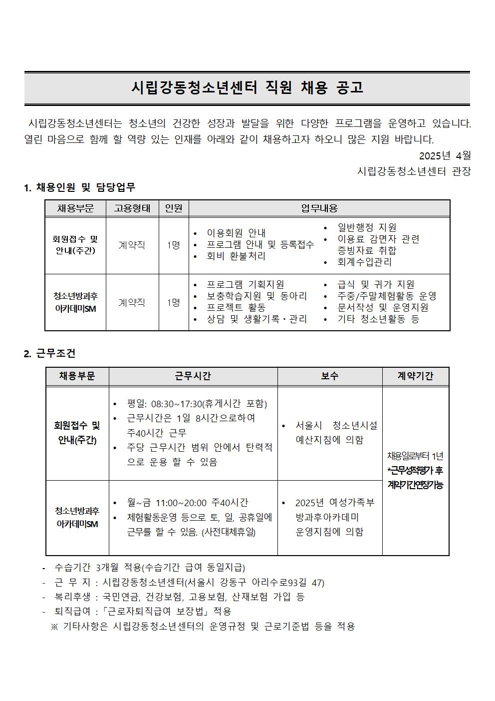 | ½Ã¸³°µ¿Ã»¼Ò³â¼¾ÅÍ Á÷¿øÃ¤¿ë °ø°í | |||