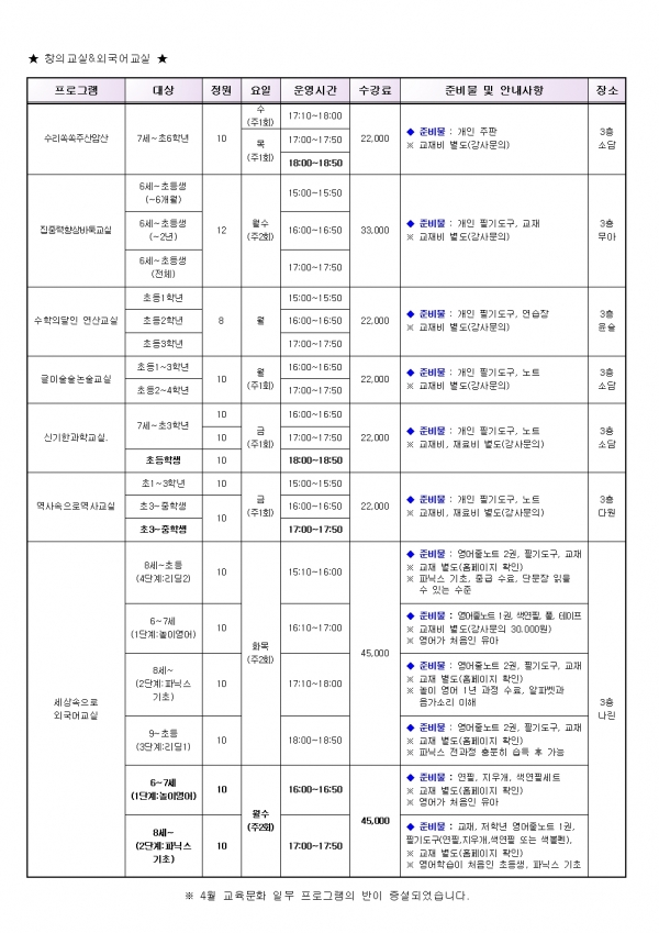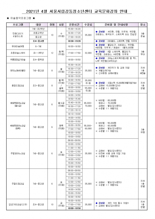 | 2021³â 4¿ù Æò»ý±³À°ÇÁ·Î±×·¥ ±³À°¹®È°Á ÇÁ·Î±×·¥ ¾È³» | |||