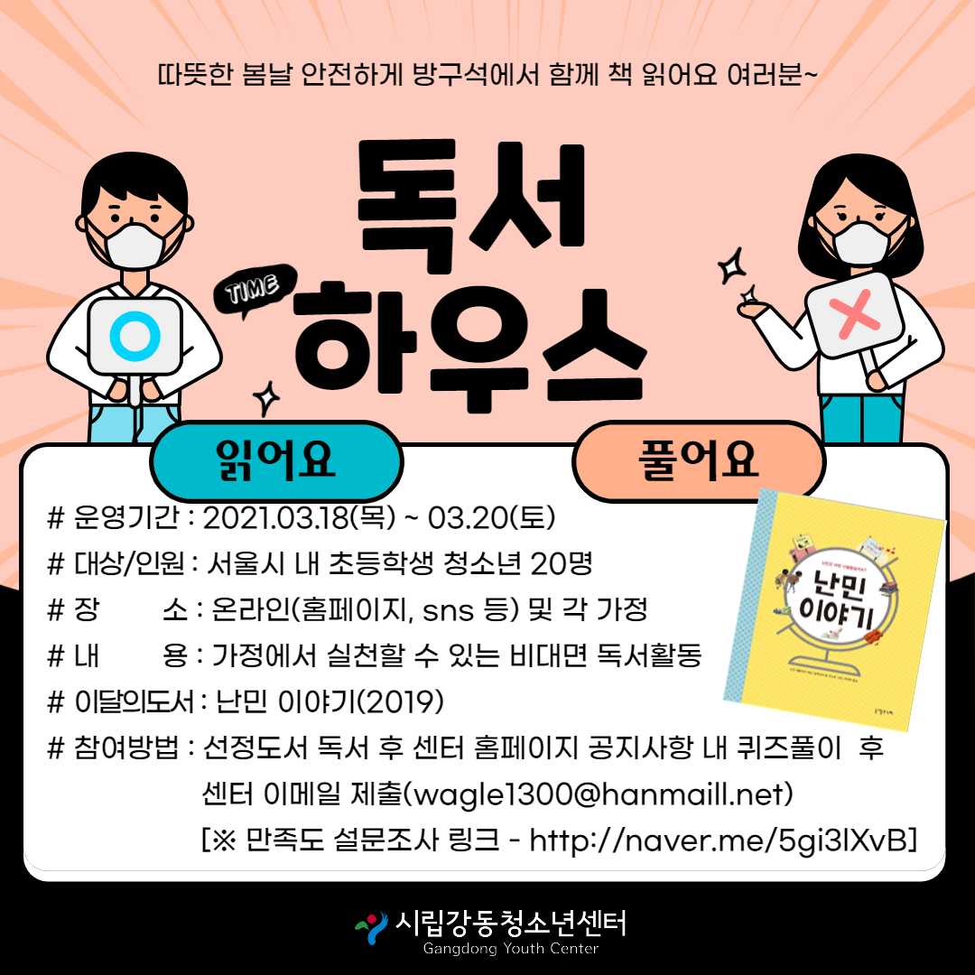 | ÀÛ¼ºÀÚ : ½Ã¸³°µ¿Ã»¼Ò³â¼¾ÅÍ(wagle1300@daum.net) ÀÛ¼ºÀÏ : 2021-03-19 Á¶È¸¼ö : 4015 | |||