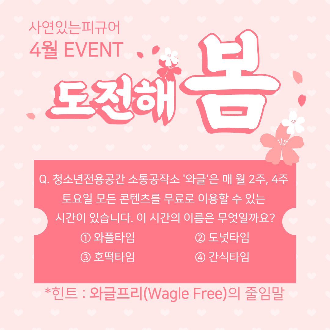 | °µ¿Ã»¼Ò³â¼¾ÅÍ 4¿ù ÄûÁî À̺¥Æ® | |||