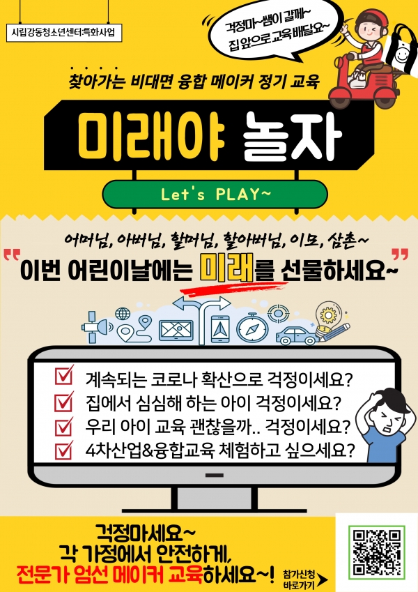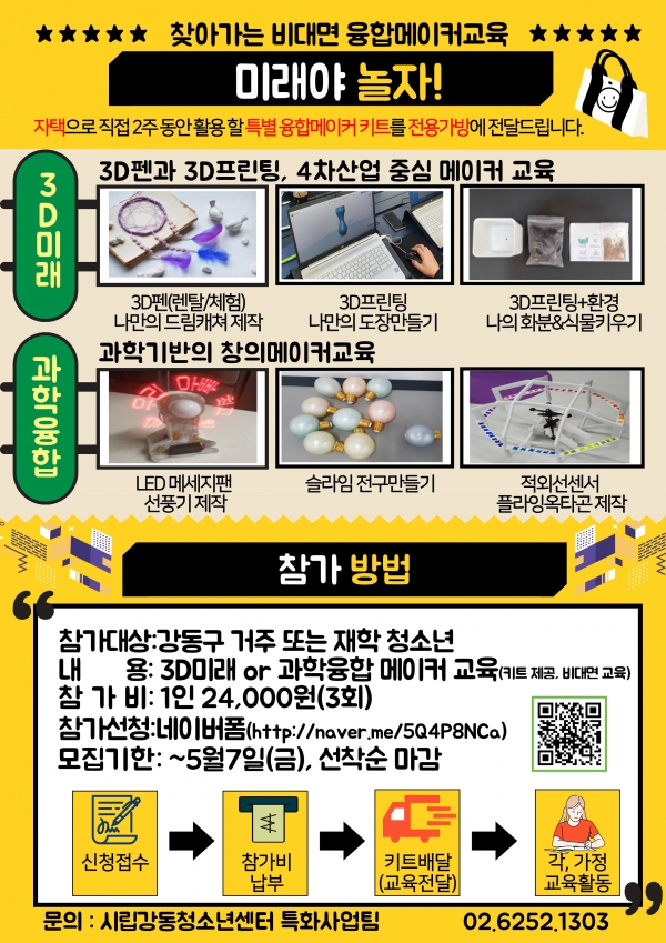 - Âü°¡´ë»ó : °µ¿±¸ °ÅÁÖ ¶Ç´Â ÀçÇРû¼Ò³â(ÃÊ,ÁßµîÇлý) - ³»¿ë : 3D¹Ì·¡ ºÐ¾ß or °úÇÐÀ¶ÇÕ ¸ÞÀÌÄ¿ ±³À° - Âü°¡ºñ : 1ÀÎ 24,000¿ø(ÃÑ3ȸ_6ÁÖ°£)