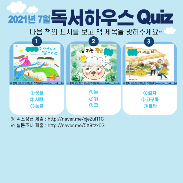 À帶°¡ ÀÌ·¸°Ô ³¡ÀÌ ³µ´Ù°í ÇÏÁö¿ä?? Áߺ¹µµ ¾îÁ¦·Î Áö³ª°í .. ¾ÆÄ§, Àú³áÀ¸·Î Á¤¸» ÇÏ·çÁ¾ÀÏ ¿¡¾îÄÁÀÌ ¾øÀ¸¸é »ì ¼ö ¾ø´Â ±×·± ÇÑ¿©¸§ÀÇ ³¯¾¾°¡ Á¤¸» °è¼Ó µÇ°í Àִµ¥¿ä.. ´õ¿î ³¯¾¾¿¡ °Ç° À¯ÀÇÇÏ½Ã¸é¼ Áö³»½Ã±æ ¹Ù¶ó°Ú½À´Ï´Ù~ Äڷγª ÀçÈ®»êÀÇ Á¶ÁüÀÌ Á»Ã³·³ °¡¶ó¾ÉÁö ¾Ê°í ÀÖ´Â µí ½ÍÀºµ¥¿ä .. ´õÀ§µµ Äڷ㪵µ ÇϷ绡¸® ¹«»çÈ÷ Àß Áö³ª°¥ ¼ö ÀÖ¾úÀ¸¸é ÁÁ°Ú½À´Ï´Ù.. ¸ðµÎµé ±äÀåÀ» ´ÊÃßÁö ¸»°í ¹æ¿ª¿¡ öÀúÇÏ°Ô Á¶±Ý ´õ ½Å°æÀ» ½á¾ßÇÒ¶§ ÀÎ °Í °°½À´Ï´Ù..¤Ì¤Ì °µ¿Ã»¼Ò³â¼¾ÅÍ¿Í ÇÔ²²ÇÏ´Â µ¶¼ÇϿ콺 7¿ù 2ź 'Ã¥ À̸§ ¸ÂÃß±â'°¡ µ¹¾Æ¿Ô½À´Ï´Ù~! ¿Â¶óÀÎ(http://naver.me/xjeZuR1C)À¸·Î Á¤´äÀ» Á¦ÃâÇØÁÖ¼¼¿ä! Âü¿© ÈÄ ¸¸Á·µµ Á¶»ç(http://naver.me/5X9tzx6G)µµ ÀØÁö¸¶¼¼¿ä! û¼Ò³âºÐµéÀÇ ¸¹Àº °ü½É°ú Âü¿©ºÎʵ右´Ï´Ù^^