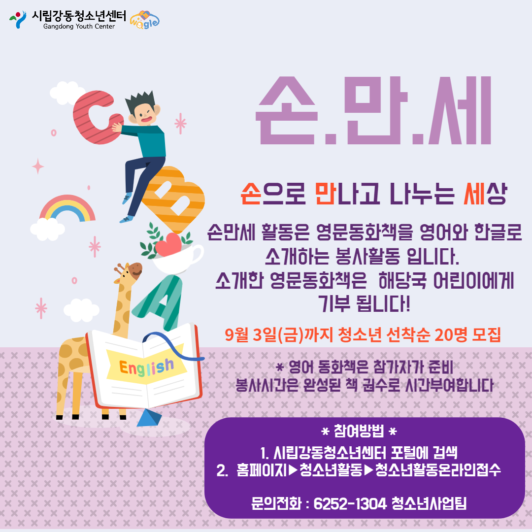 | ÀÛ¼ºÀÚ : ½Ã¸³°µ¿Ã»¼Ò³â¼¾ÅÍ(wagle1300@daum.net) ÀÛ¼ºÀÏ : 2021-08-24 Á¶È¸¼ö : 5964 | |||