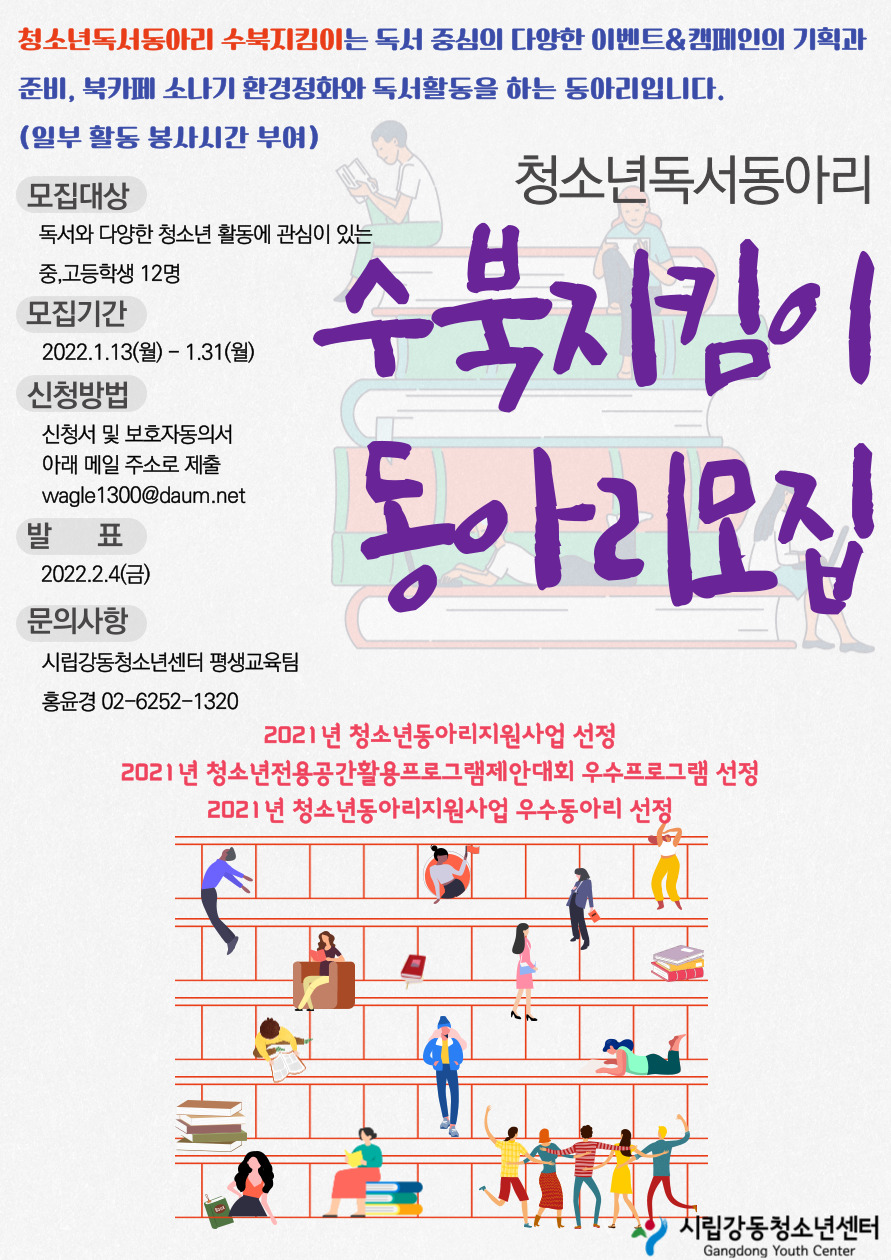 | ÀÛ¼ºÀÚ : ½Ã¸³°µ¿Ã»¼Ò³â¼¾ÅÍ(wagle1300@daum.net) ÀÛ¼ºÀÏ : 2022-01-10 Á¶È¸¼ö : 4900 | |||