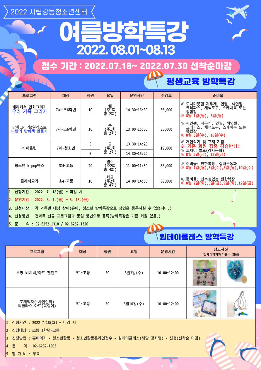 | 2022³â ¿©¸§¹æÇÐÆ¯° ÇÁ·Î±×·¥ ¾È³»(08.01~08.13) | |||